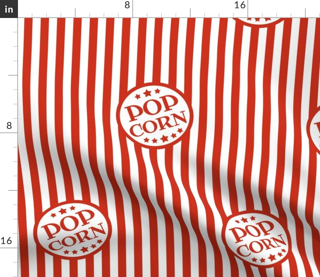 Popcorn, Movie, Box, Stripes, Red, White, Theater, Vintage, Fair, Circus Custom Printed Fabric by Spoonflower Various Fabrics by the Yard or Fat Quarter