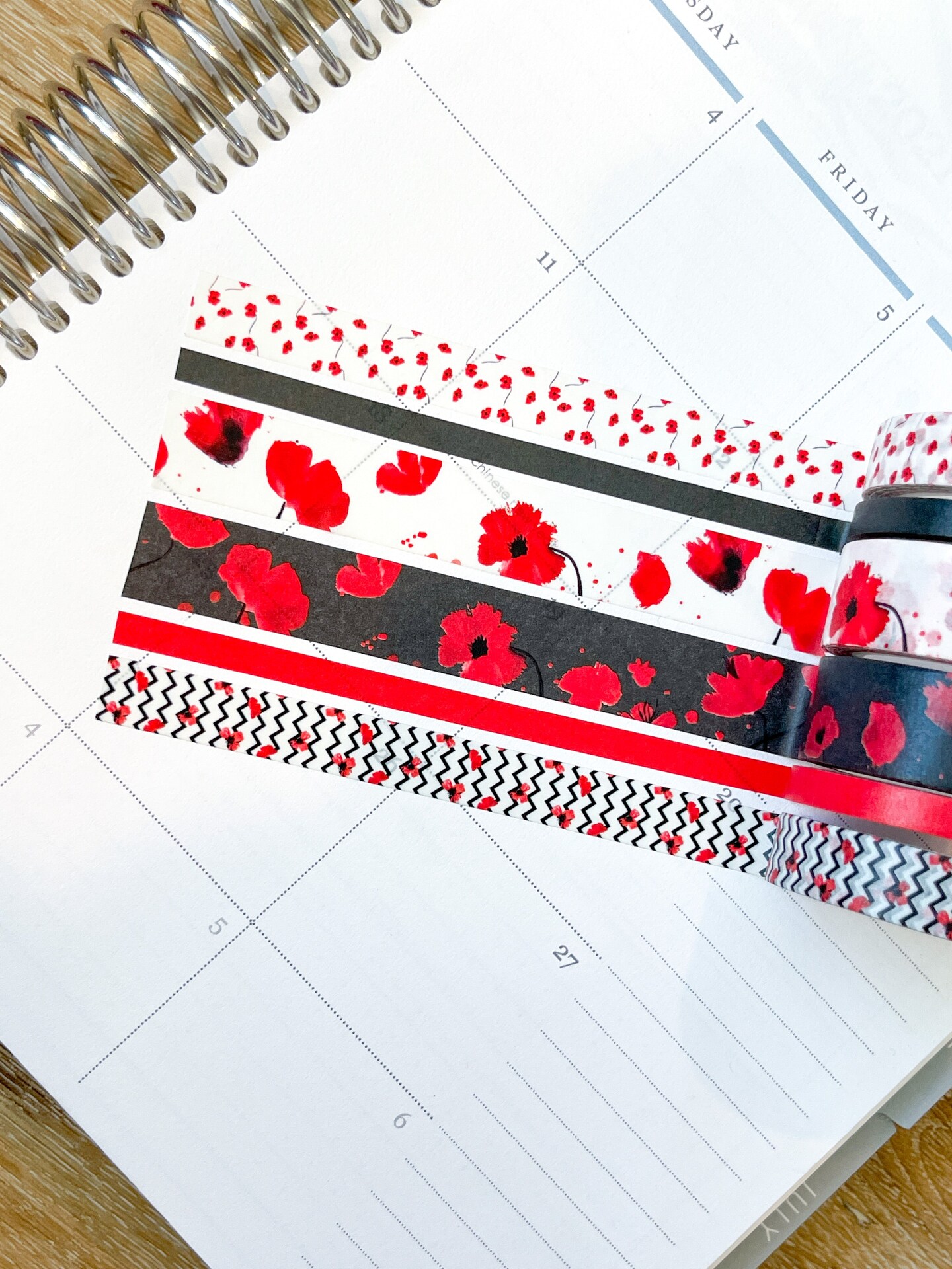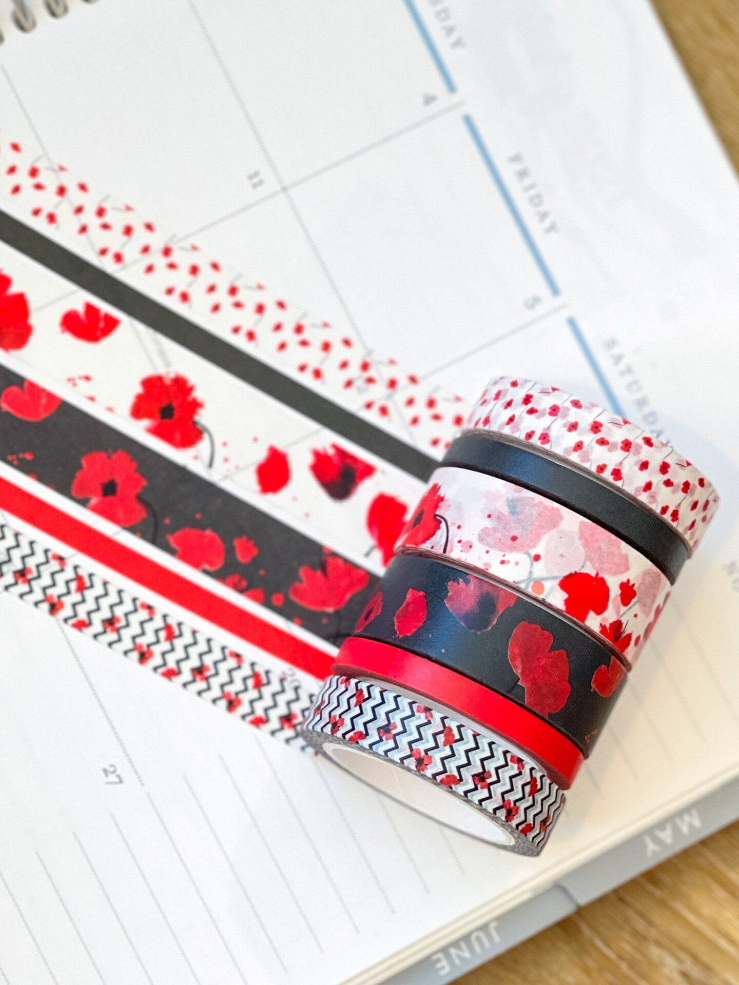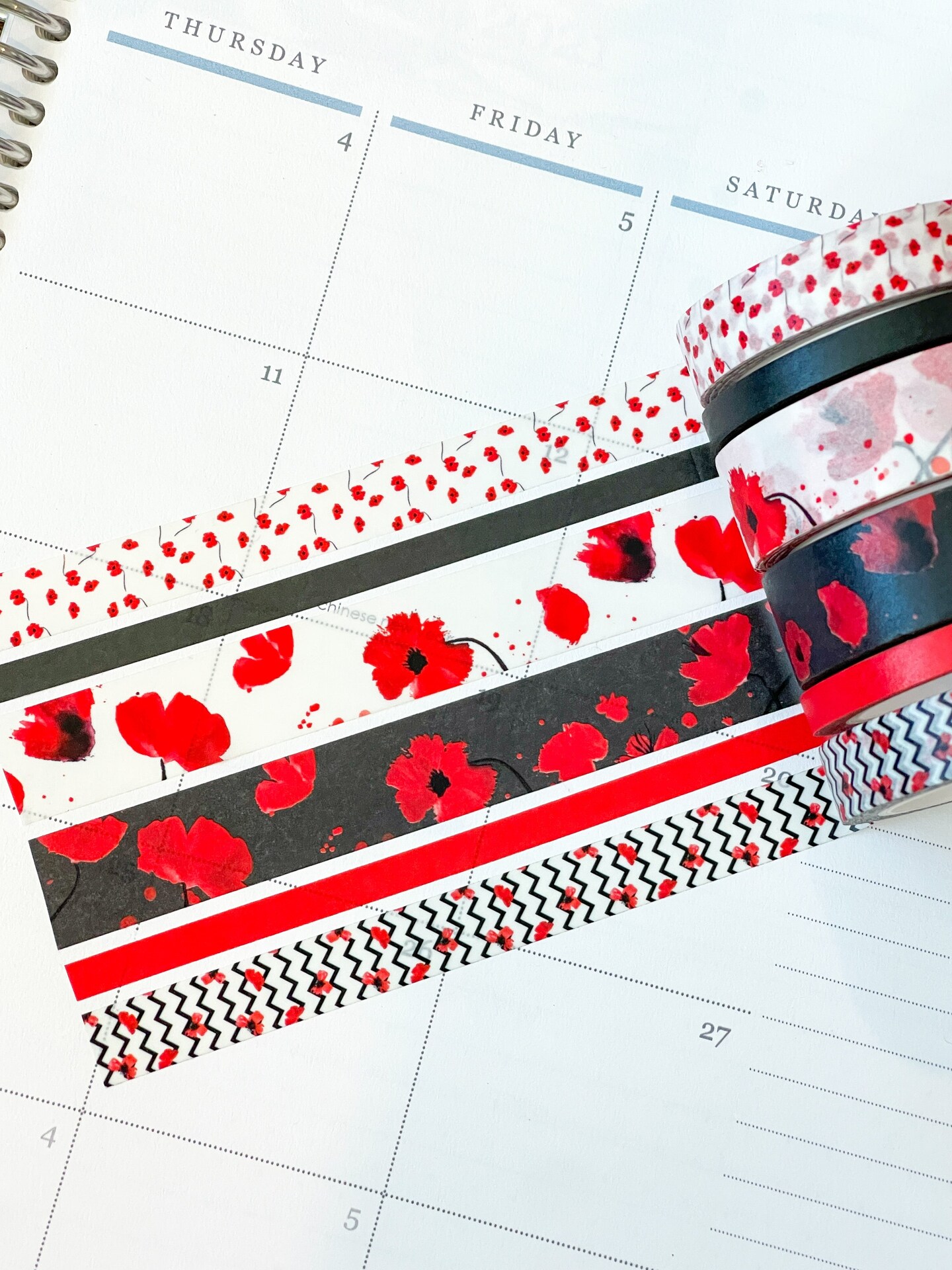 Poppies Red & Black Flowers Valentines Day Washi Tape Set (#W051)