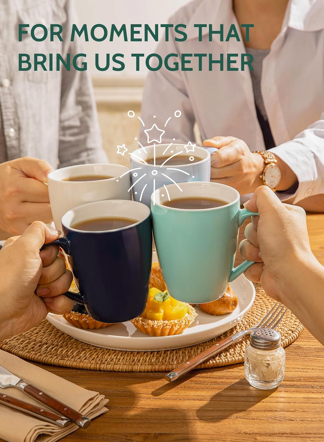 Porcelain Coffee Mugs - 16 Ounce - Set of 6