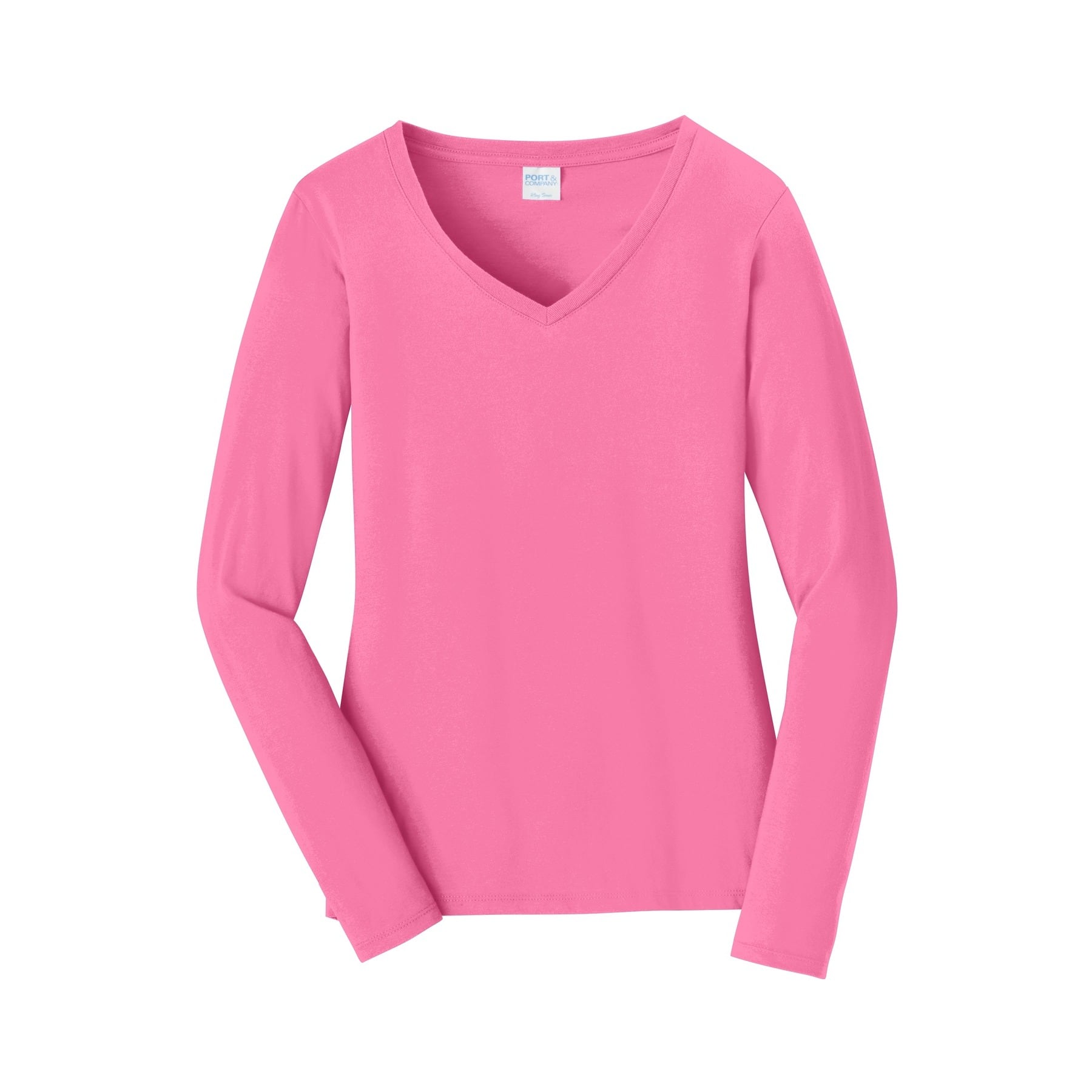 Port & Company® Fan Favorite™ Colors Long Sleeve Ladies V-Neck T-Shirt