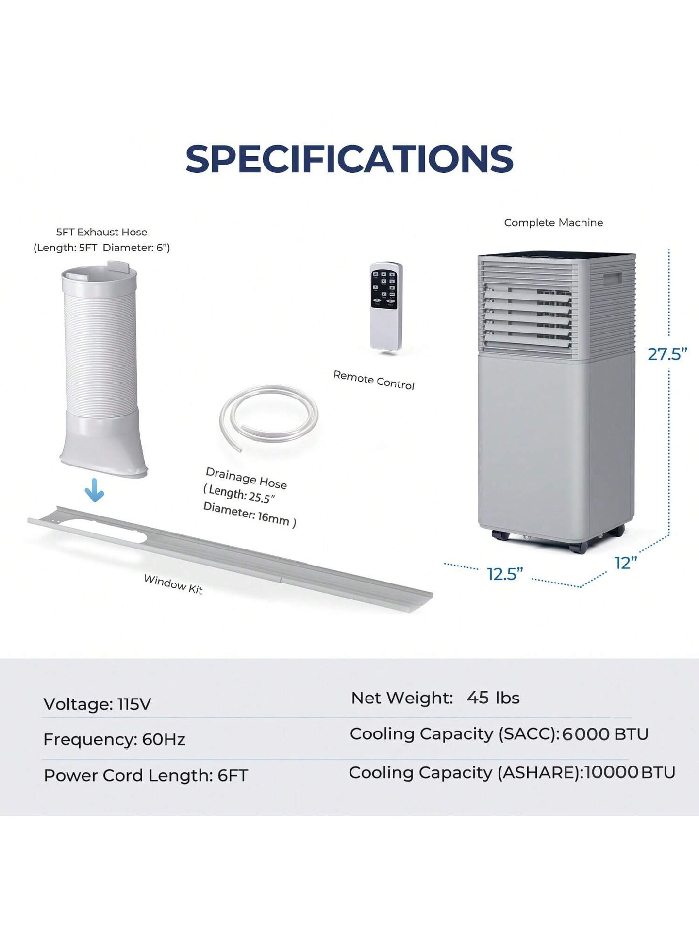 Portable 10000 BTU Air Cooler Fan Dehumidifier 3-in-1 Remote Control