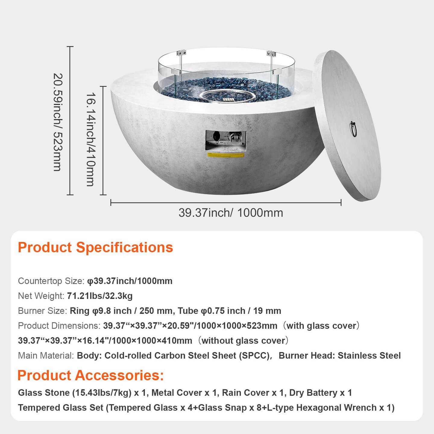 Portable 39 Inch Propane Fire Pit Table Outdoor Patio Heater Stainless Steel Burner Smoke-Free