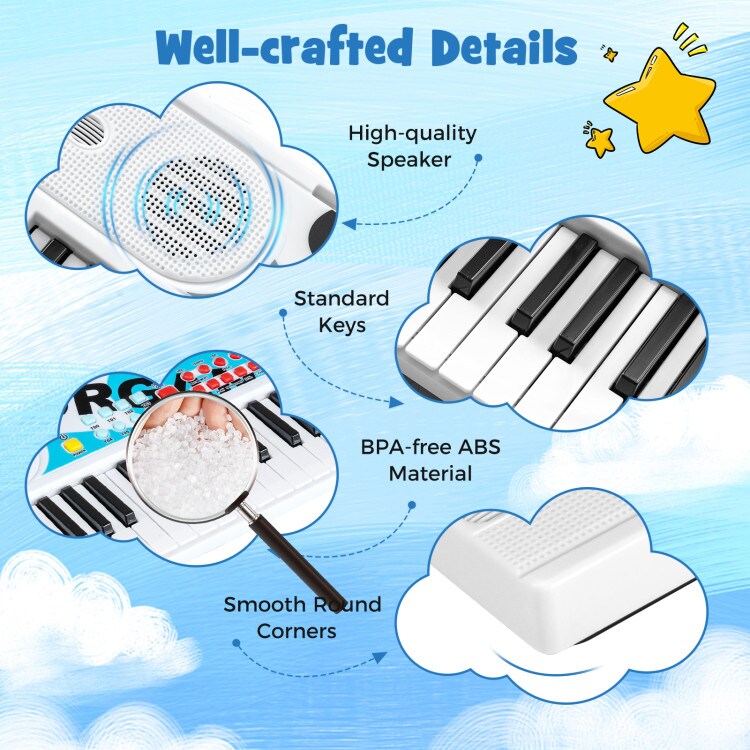 Portable 49-Key Kids Keyboard Piano with 8 Rhythms, 8 Tones and Microphone