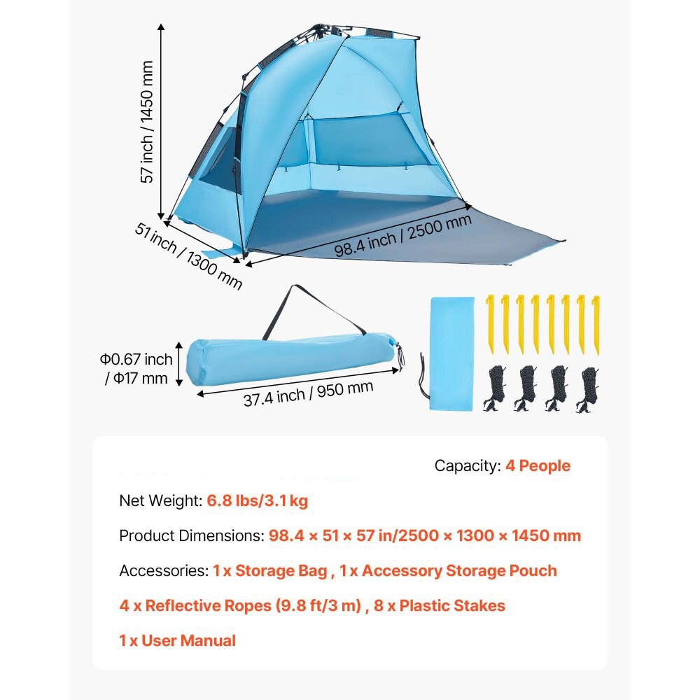 Portable 4-Person Beach Tent with UPF 50+ Protection, Carry Bag Included