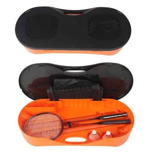 Portable Badminton Net Set Storage Box Base With 2 Battledores 2 Shuttlecocks Large Orange