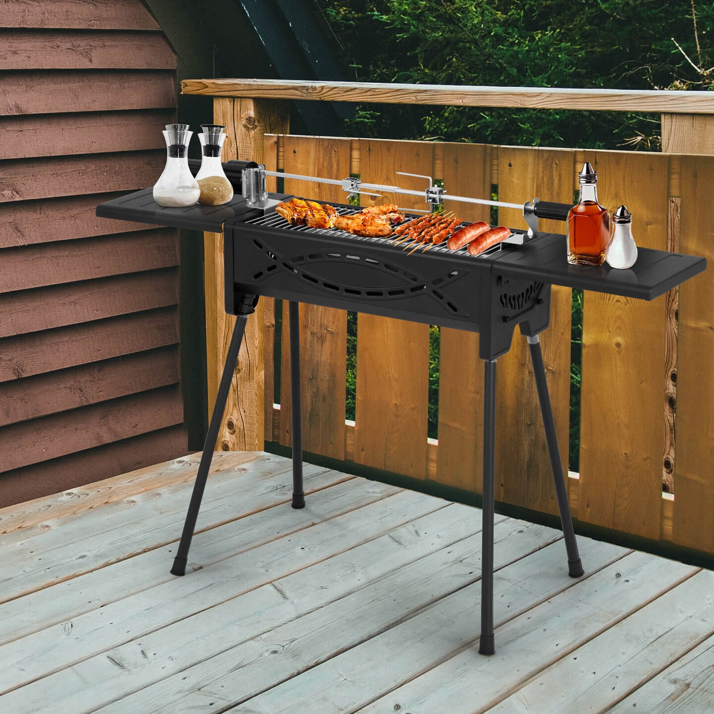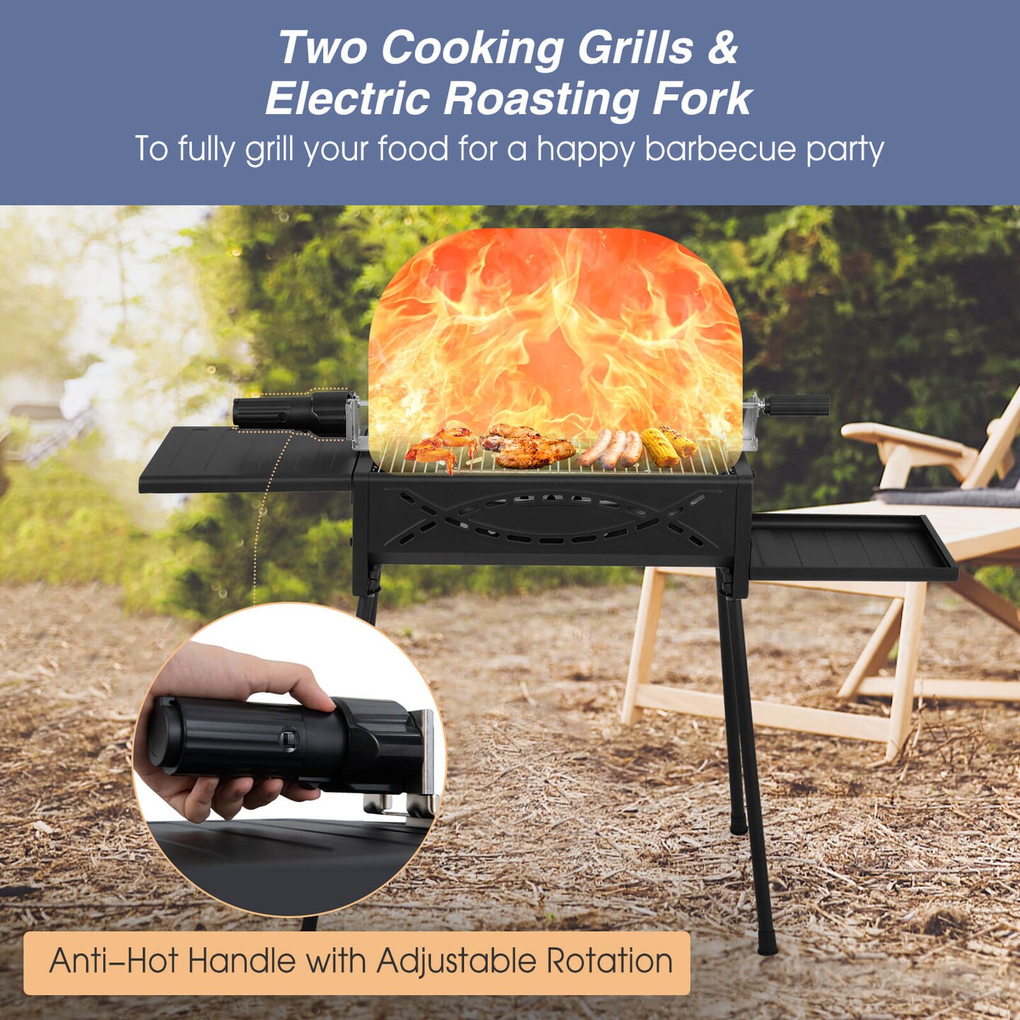 Portable Charcoal Grill with Electric Roasting Fork-Black