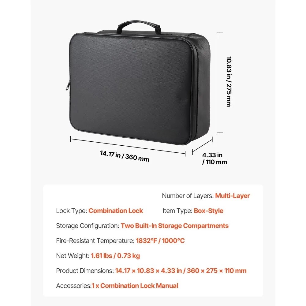 Portable Fireproof Document Box, Heat and Water Resistant Safe with Lock for Important Files
