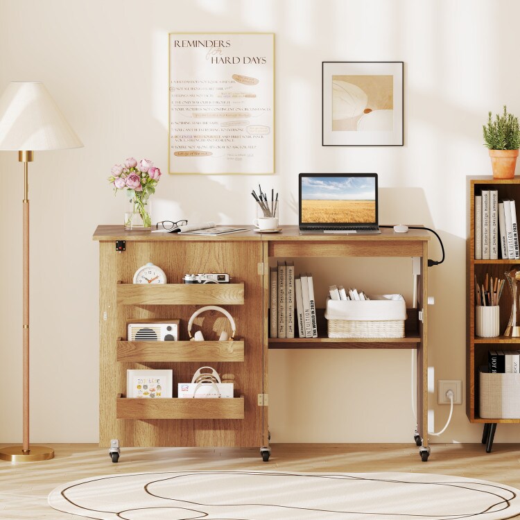 Portable Mobile Folding Sewing Cabinet with USB Charging Port and Multi-Tier Storage