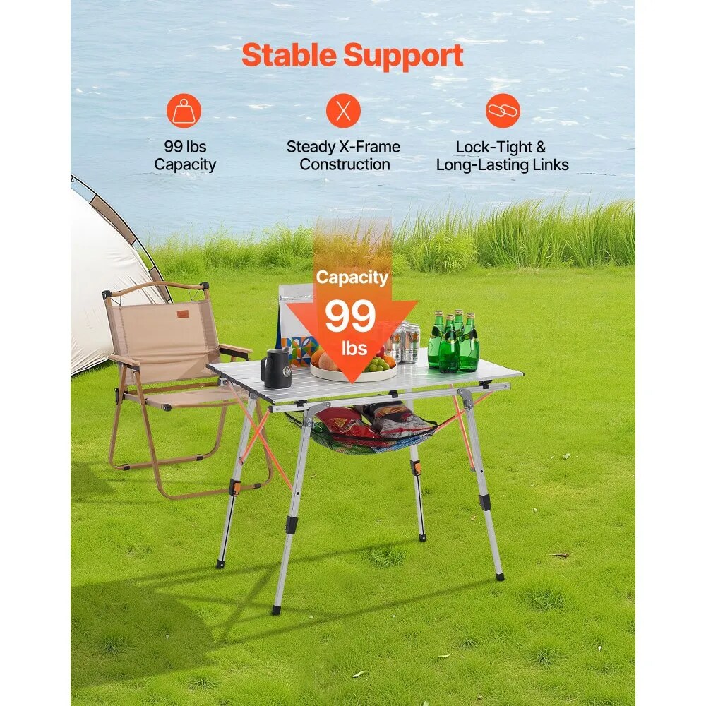 Portable Roll Up Aluminum Camping Table with Adjustable Height