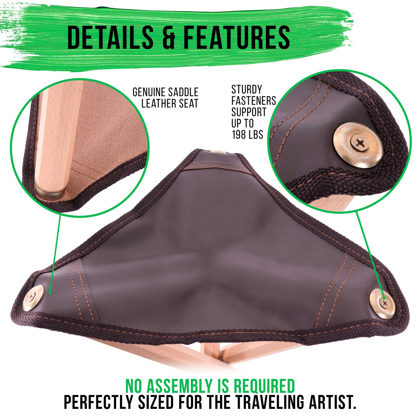 Portable Three Leg Wood Artist Folding Stool with Saddle Leather Seat