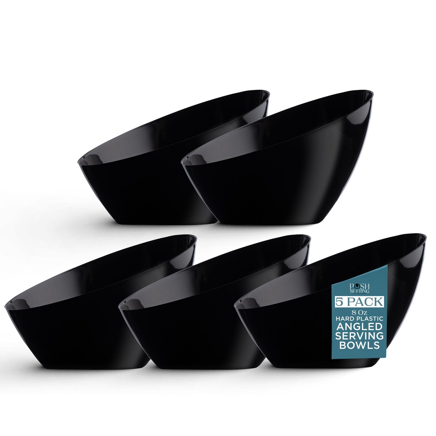 Posh Setting Black Plastic Serving Bowls Disposable - Angled Bowls - Angled Candy Bowl - Plastic Snacks & Chip Bowls for Parties - Black, Gold & Clear, White Serving Dishes, 8 OZ, 5 Pack
