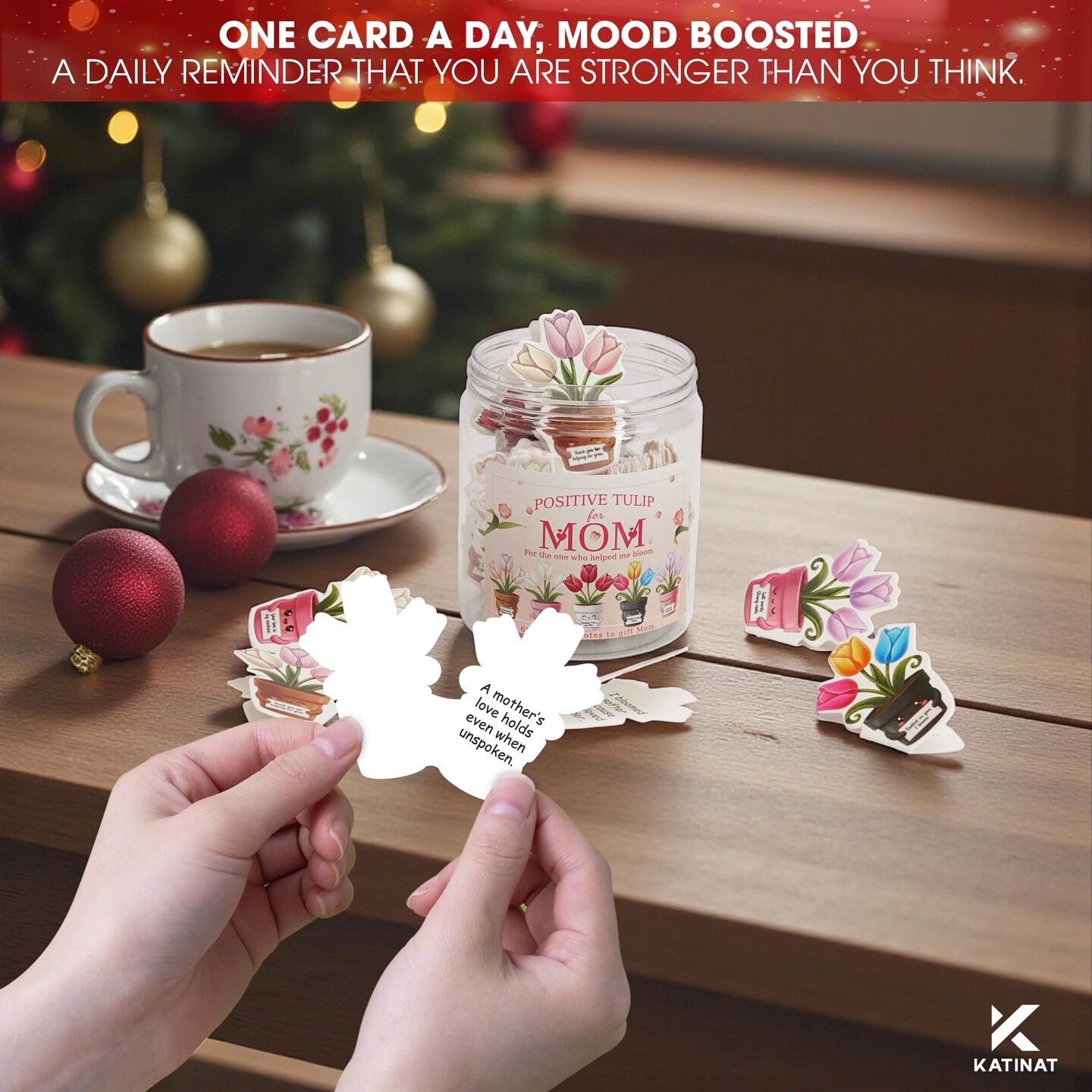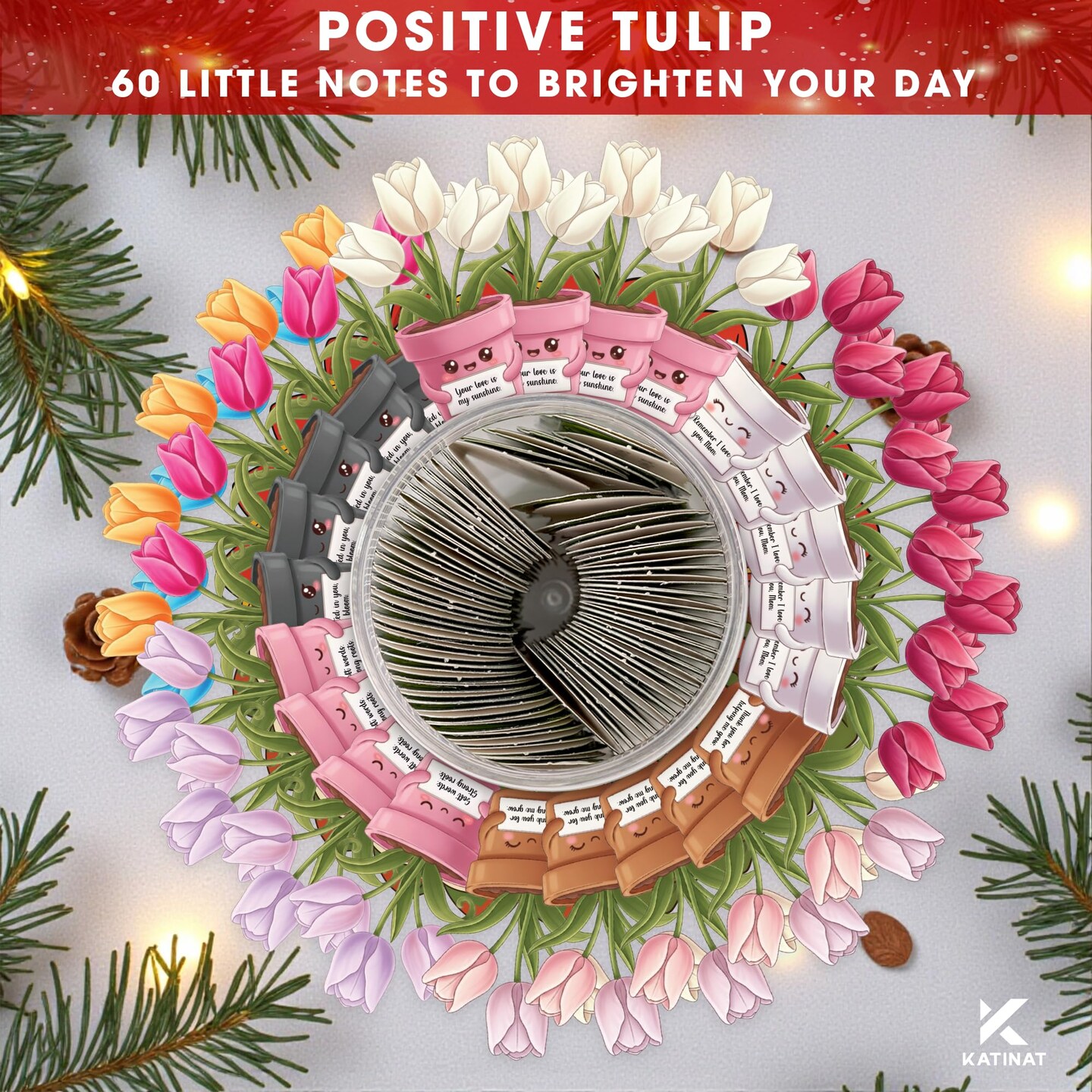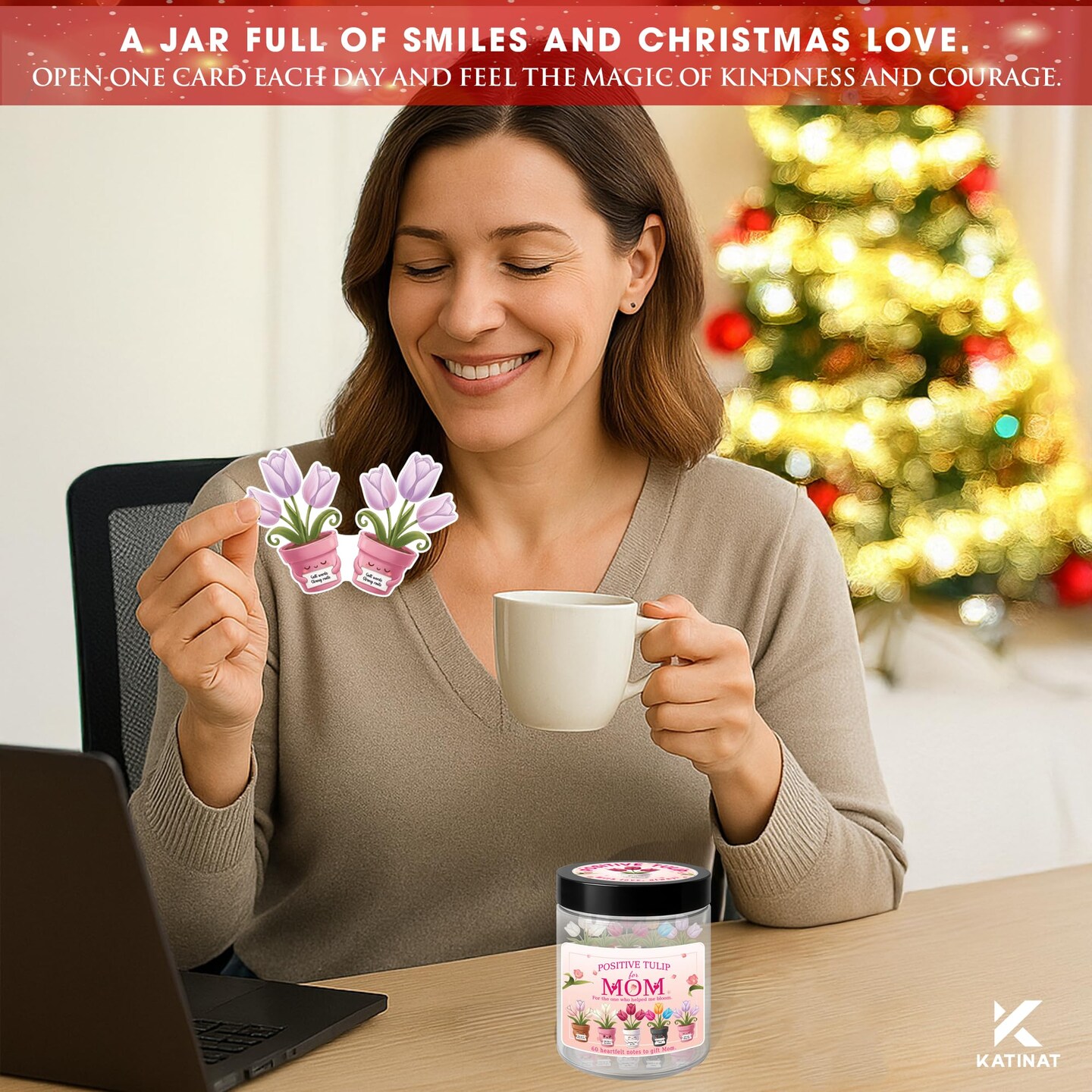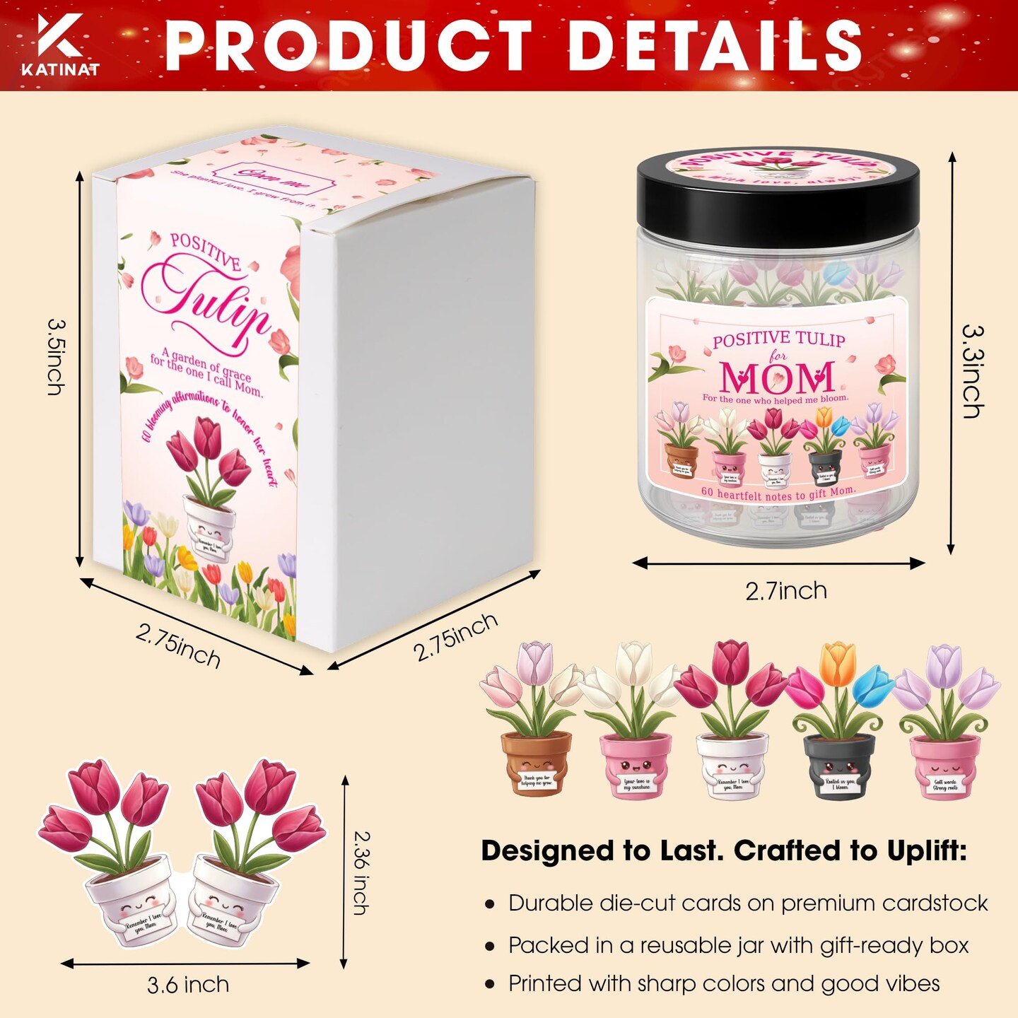 Positive Tulip Jar for Mom – 60 Thoughtful Emotional Support Tulips, Cute Birthday Mothers Day Gifts for Mom Step Mom from Daughter Son, Easter Basket Stuffers for Mom, Step Mom, Mother in Law, Wife