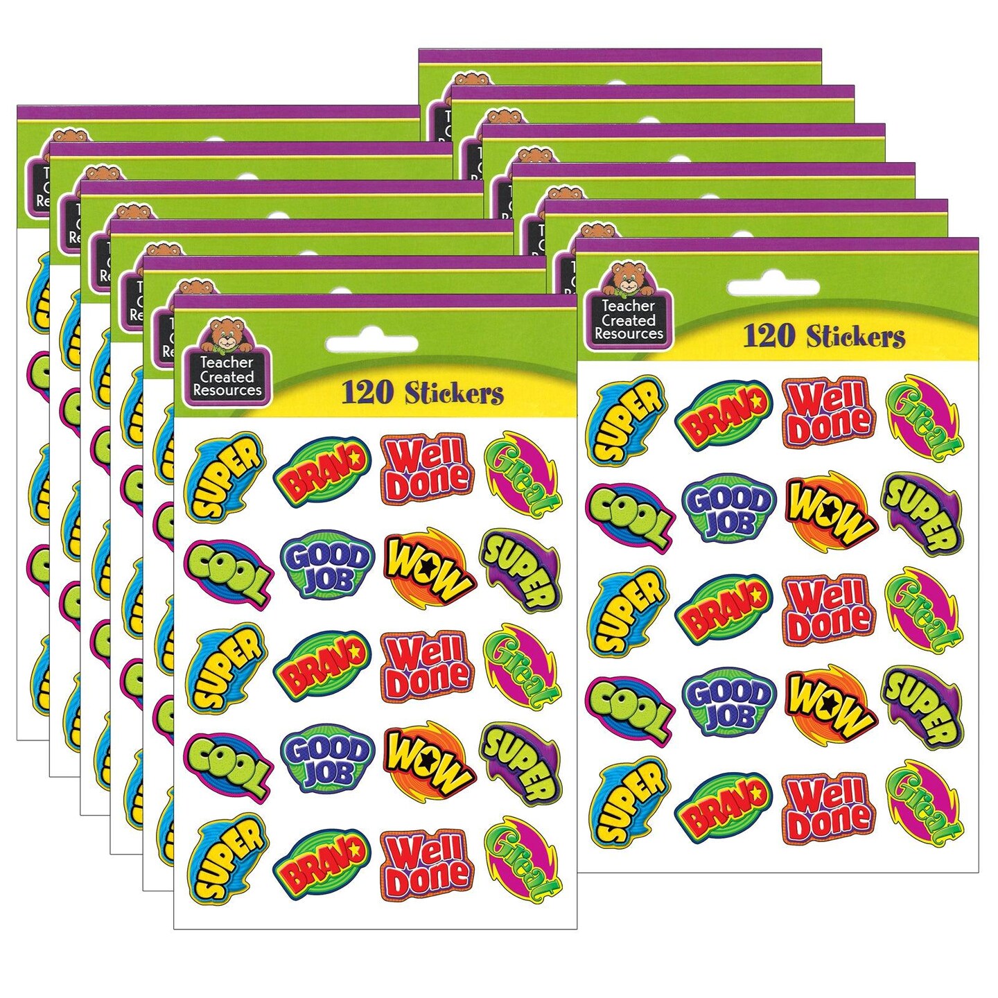 Positive Words Stickers, 120 Per Pack, 12 Packs