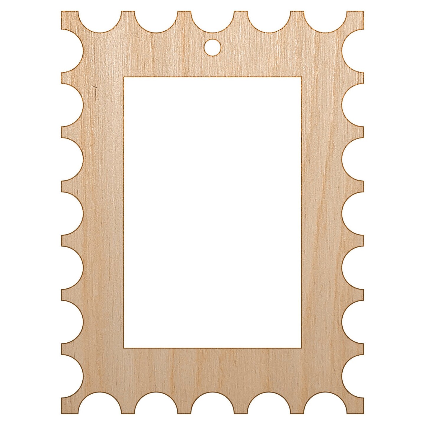 Postage Stamp Border Unfinished Craft Wood Holiday Christmas Tree DIY Pre-Drilled Ornament