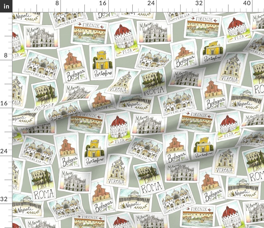Postcard Vintage Italy Lettering Travel Retro Trip Custom Printed Fabric by Spoonflower Various Fabrics by the Yard or Fat Quarter