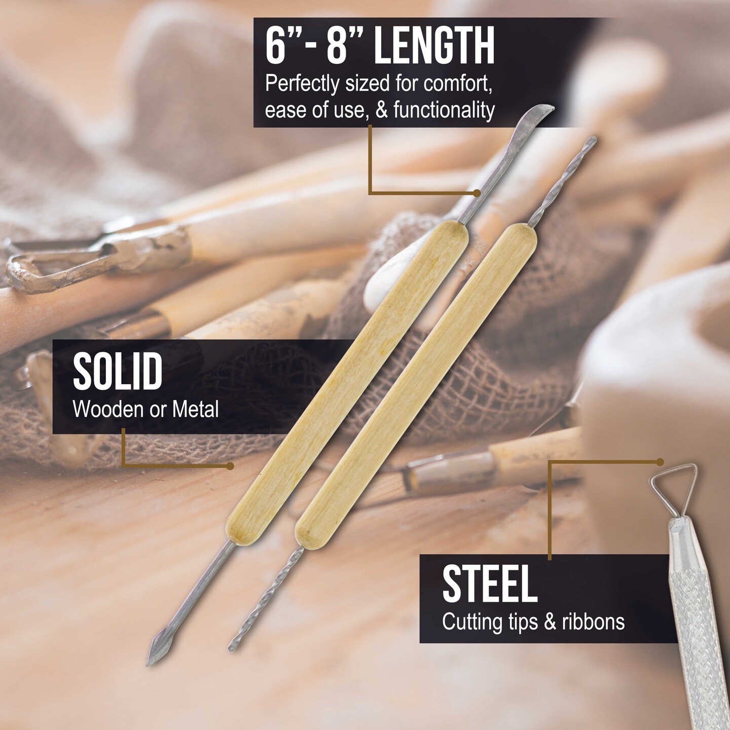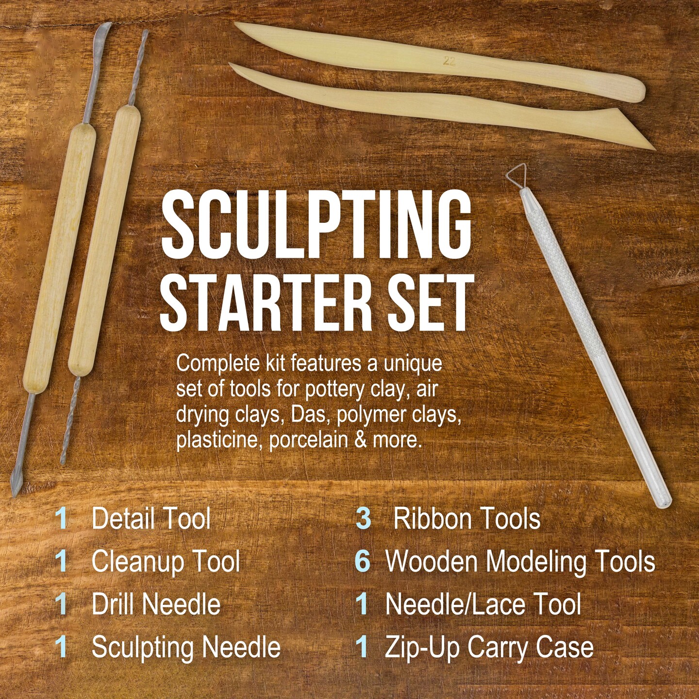 Pottery & Clay Tools Set (14-Piece) - Includes Pottery Tools, Canvas Case for Sculpting, Ceramics, and Easy Storage & Transport