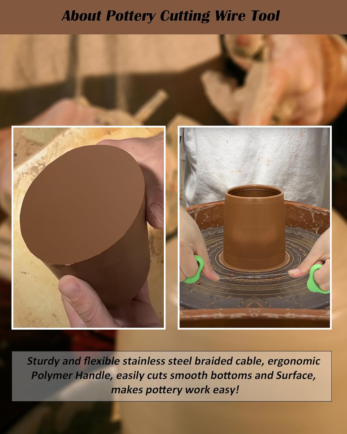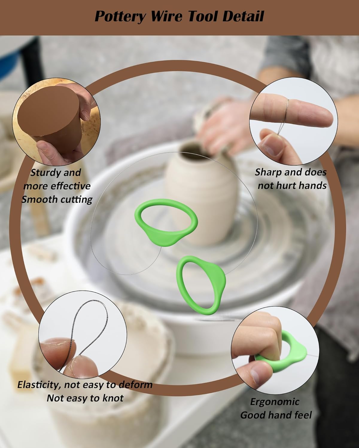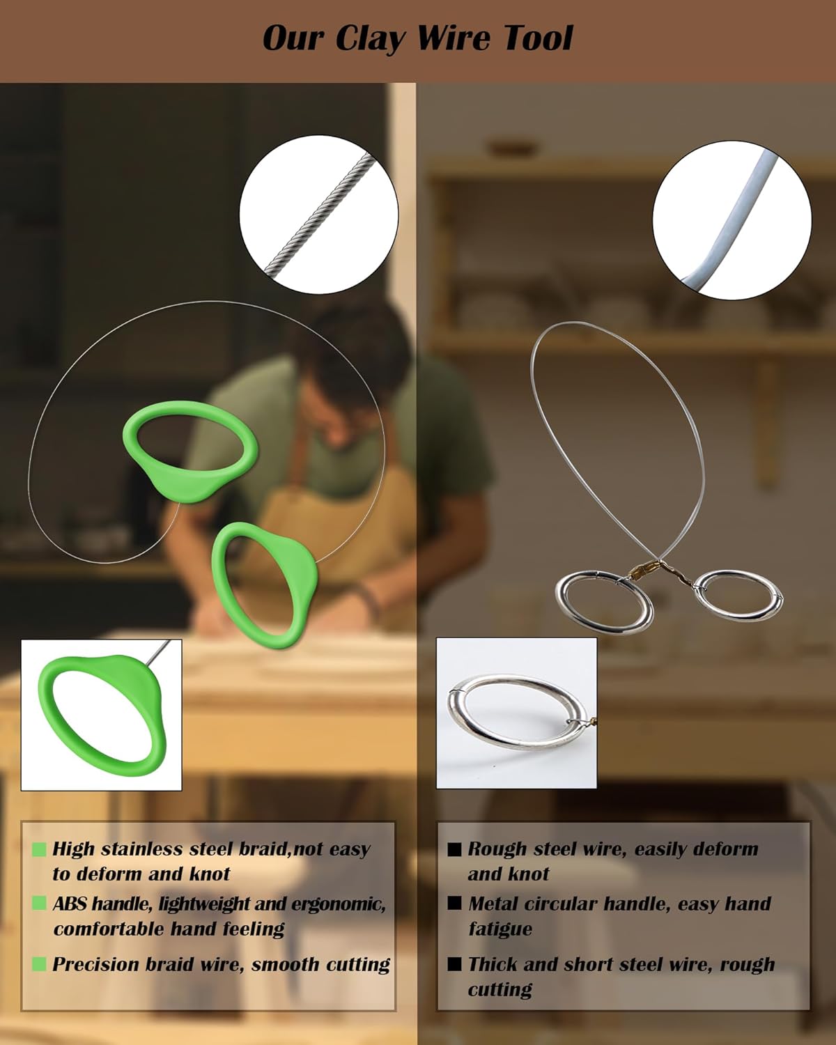 Pottery Wire Tool, Clay Cutting Wire, Green Handle