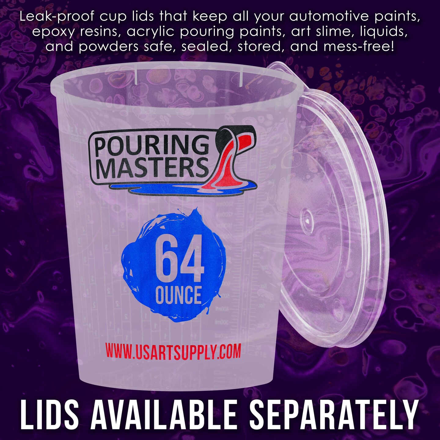 Pouring Masters 64 Ounce (2000ml) Graduated Plastic Mixing Cups (Box of 12) - Paint Mixing Cups for Epoxy Resin, Art, Kitchen, Baking - Measurements in OZ and ML, 4 Different Measuring Ratios 1:1