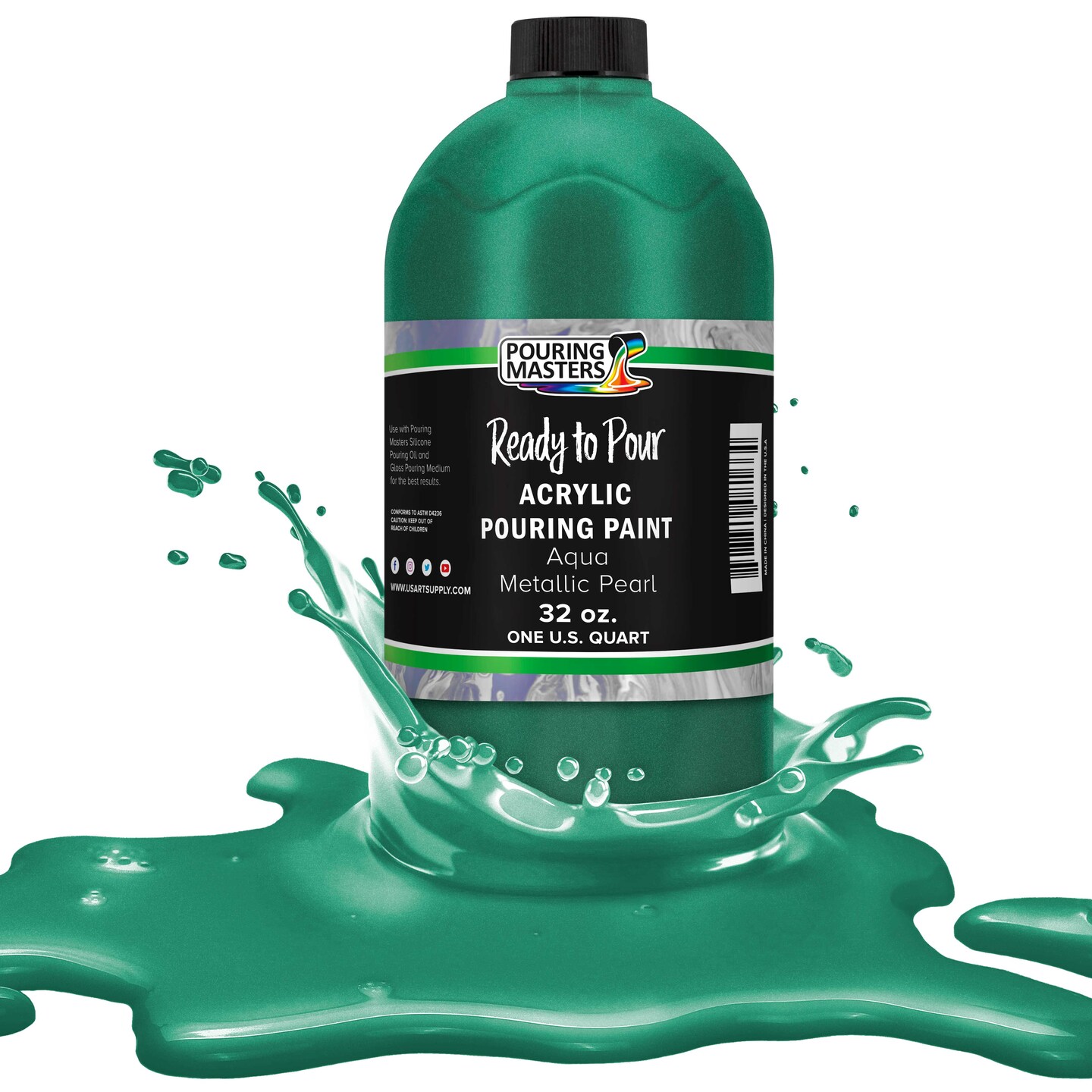 Pouring Masters Aqua Metallic Pearl Ready to Pour Acrylic Pouring Paint - Premium 32-Ounce Pre-Mixed Fluid Acrylic Paint - Fluid Art Supplies for Canvas, Wood, Paper, Tile & Rocks