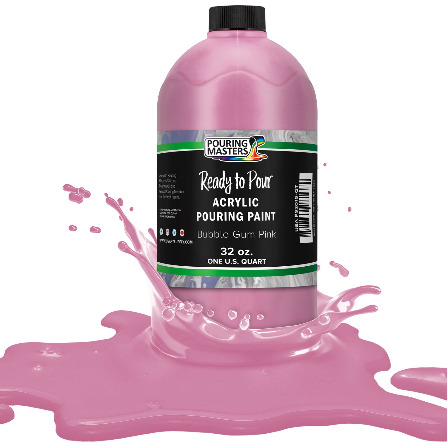 Pouring Masters Bubble Gum Pink Ready to Pour Acrylic Pouring Paint - Premium 32-Ounce Pre-Mixed Fluid Acrylic Paint - Fluid Art Supplies for Canvas, Wood, Paper, Tile & Rocks