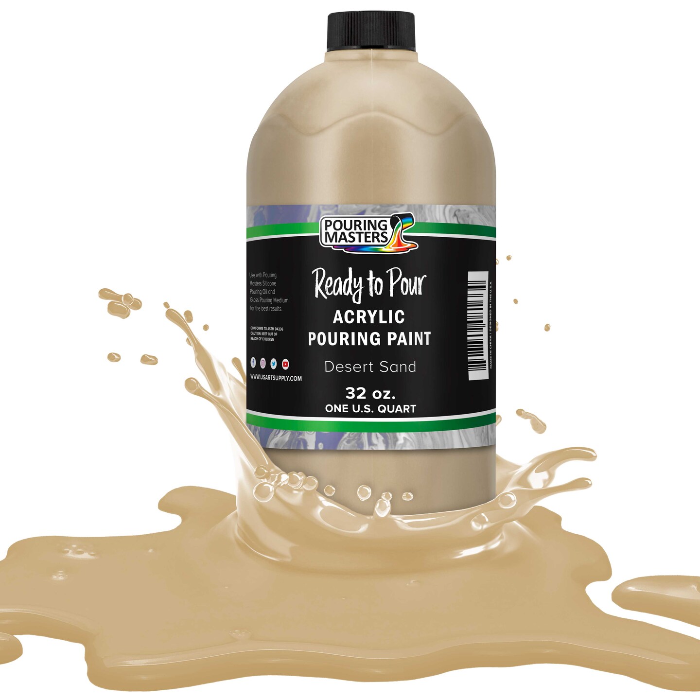 Pouring Masters Desert Sand Ready to Pour Acrylic Pouring Paint - Premium 32-Ounce Pre-Mixed Fluid Acrylic Paint - Fluid Art Supplies for Canvas, Wood, Paper, Tile & Rocks