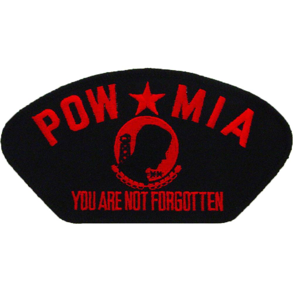 POW MIA Hat Patch Red & Black 2 3/4" x 5 1/4"