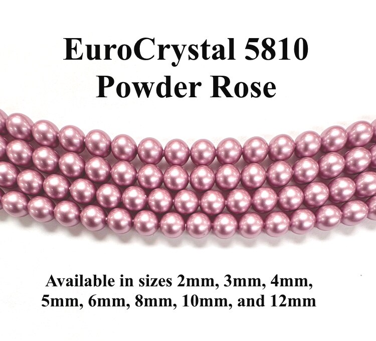 Powder Rose EuroCrystal 5810 Round Pearls - 2mm, 3mm, 4mm, 5mm, 6mm, 8mm, 10mm, and 12mm - Strands - Made in Austria
