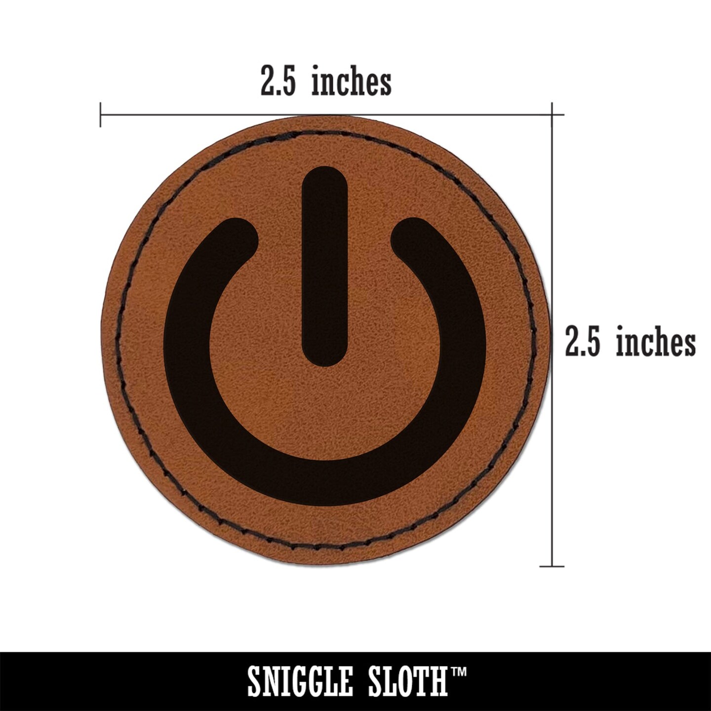 Power Button Symbol On Off Round Iron-On Engraved Faux Leather Patch Applique - 2.5"