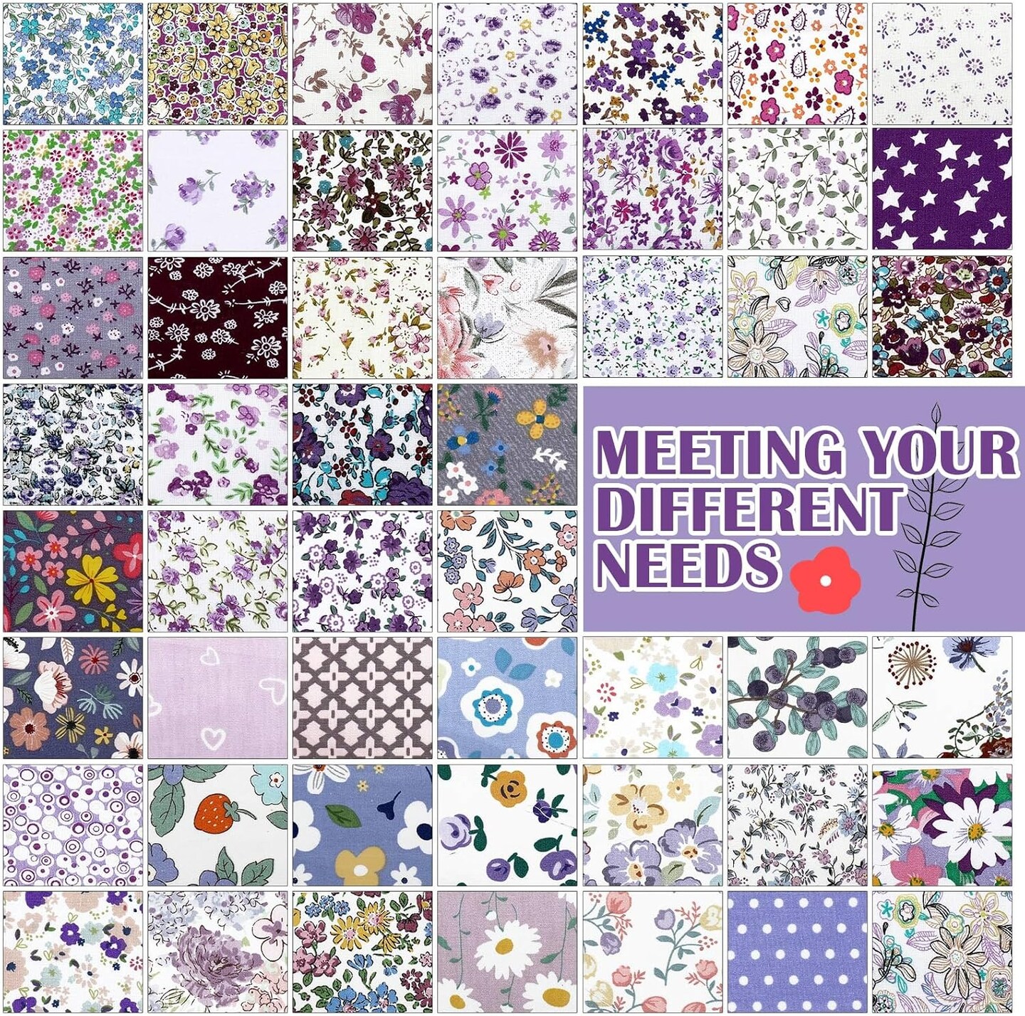 Pre-cut Fabric Cotton Quilting Squares – 600 pcs 4 x 4 Inch Purple Floral Patchwork Fabric Bundle for DIY Sewing & Crafts