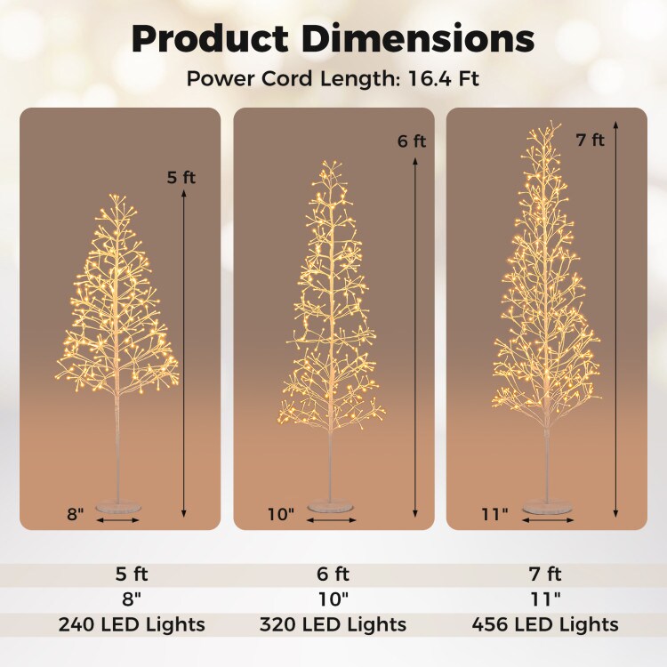 Pre-Lit 5FT Birch Twig Tree with 240 Warm White LED Lights for Holiday Decor
