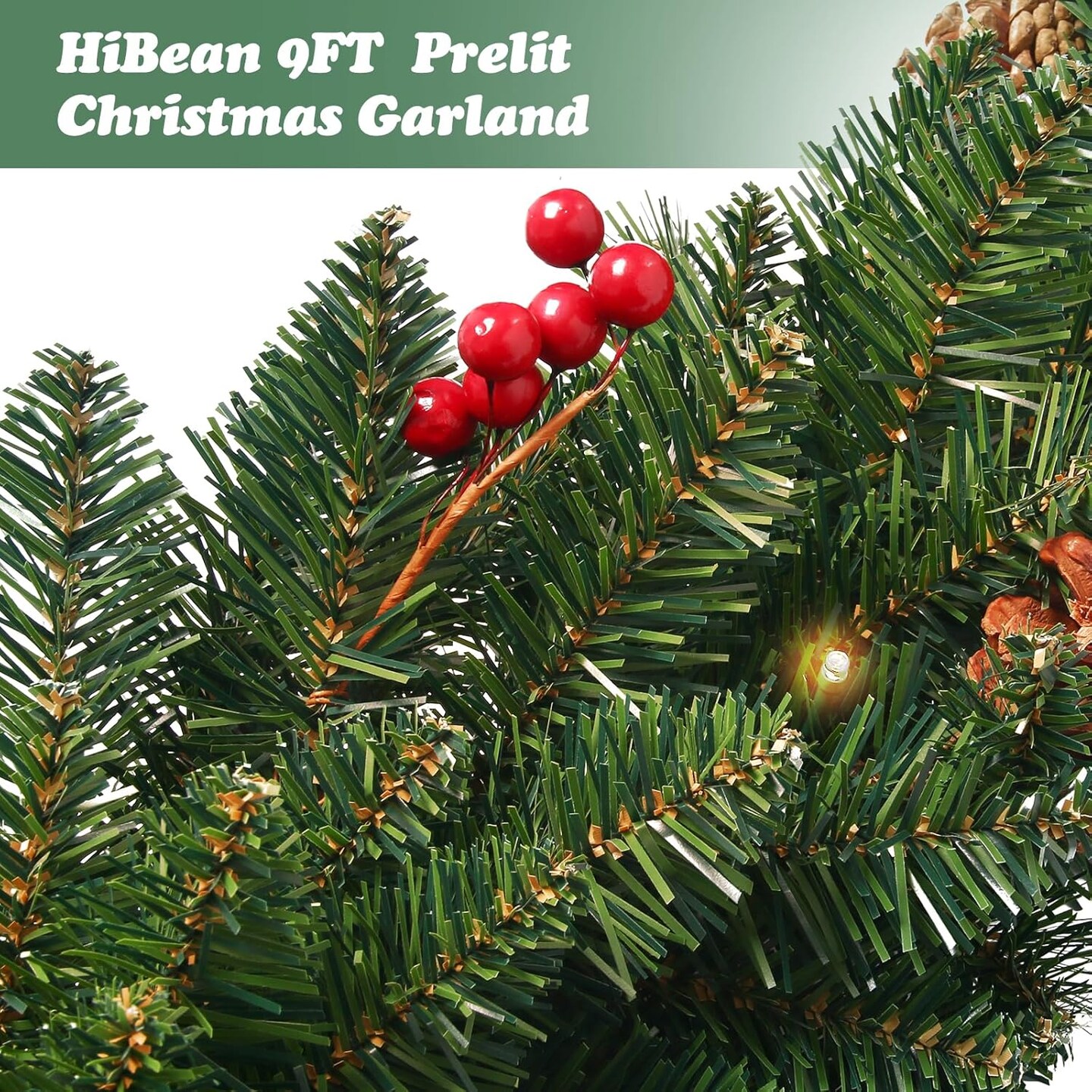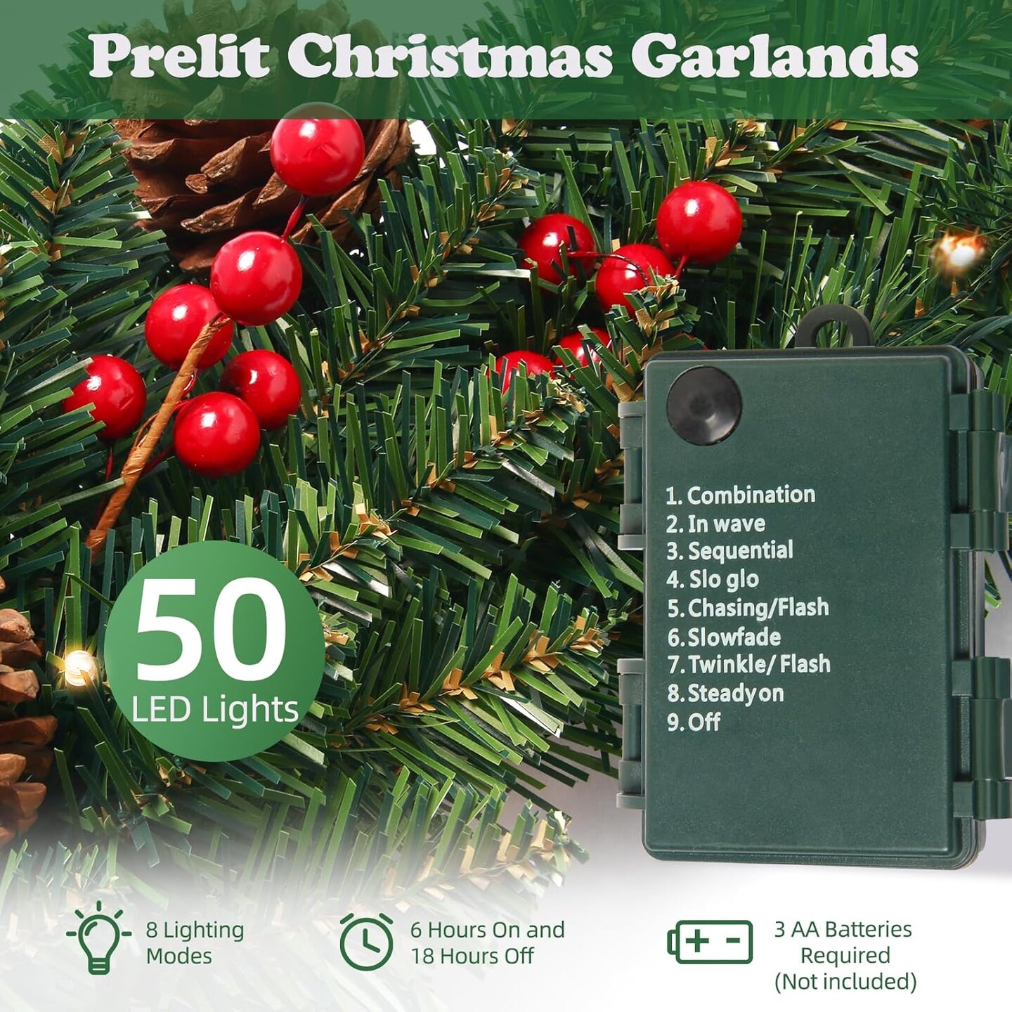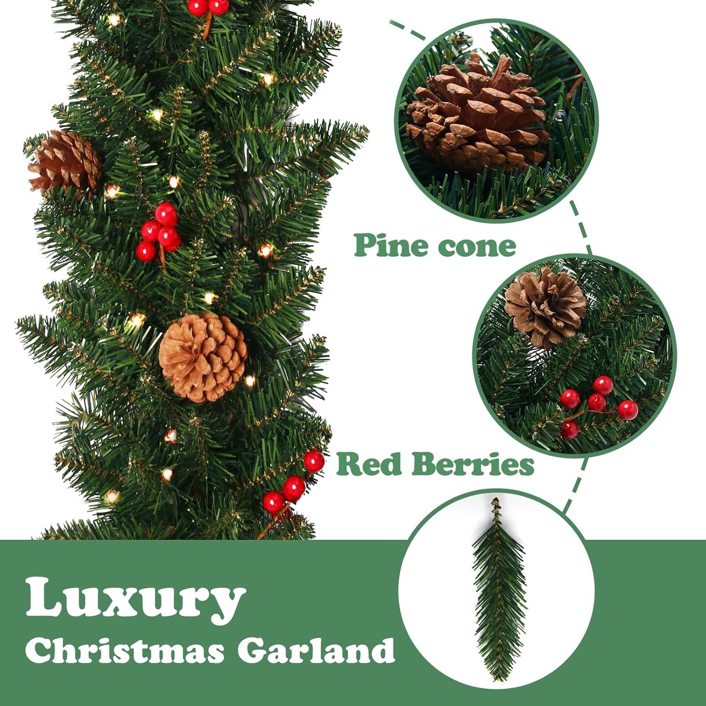 Pre-lit 9ft Christmas Garland with Red Berries (Red)