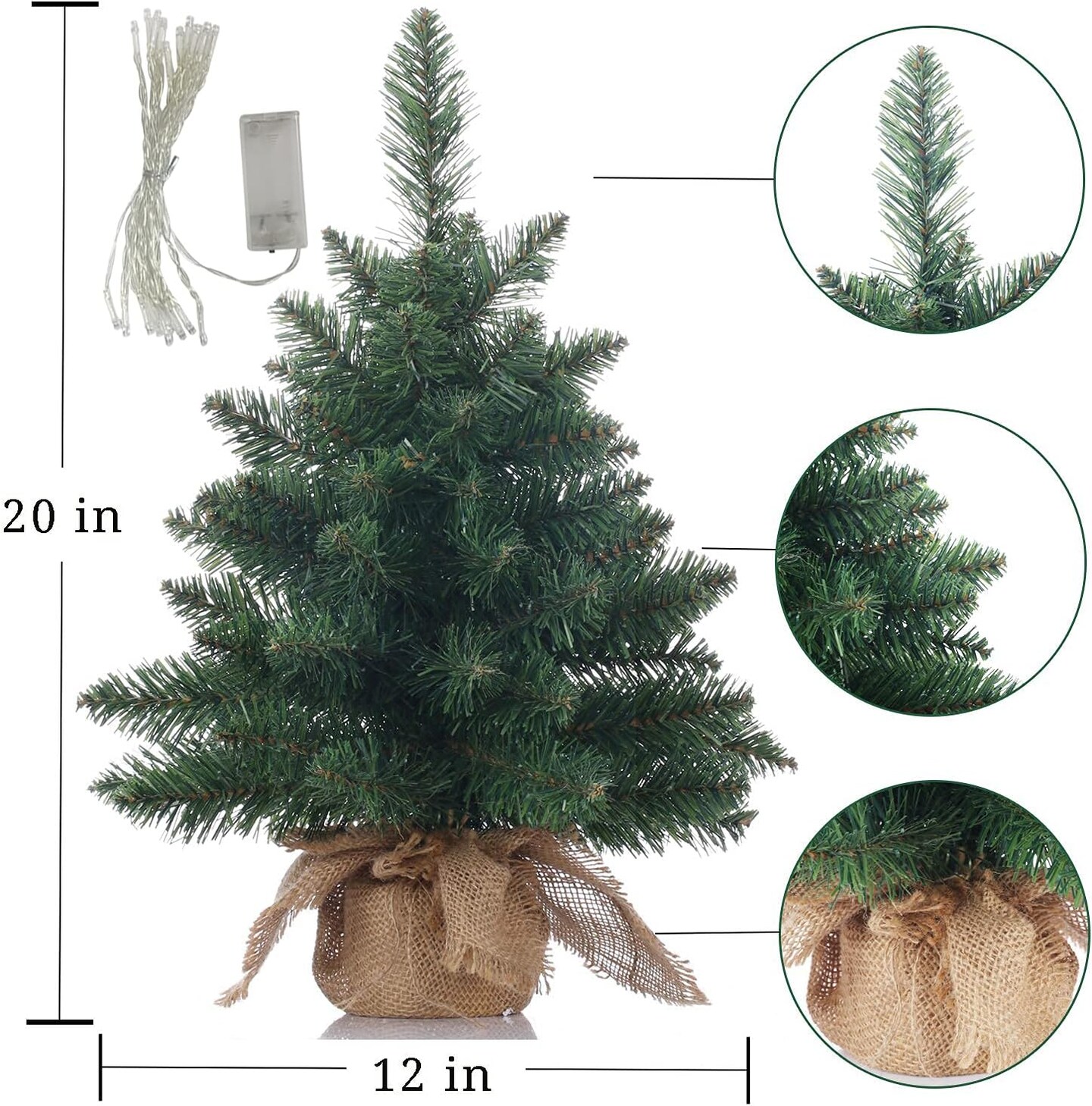 Pre-Lit Artificial Mini Christmas Tree Tabletop - 20 inch with 20 LED Lights