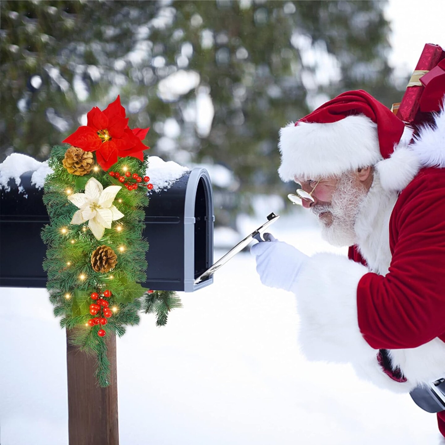 Pre-lit Christmas Mailbox Swag Garland (Red, White)