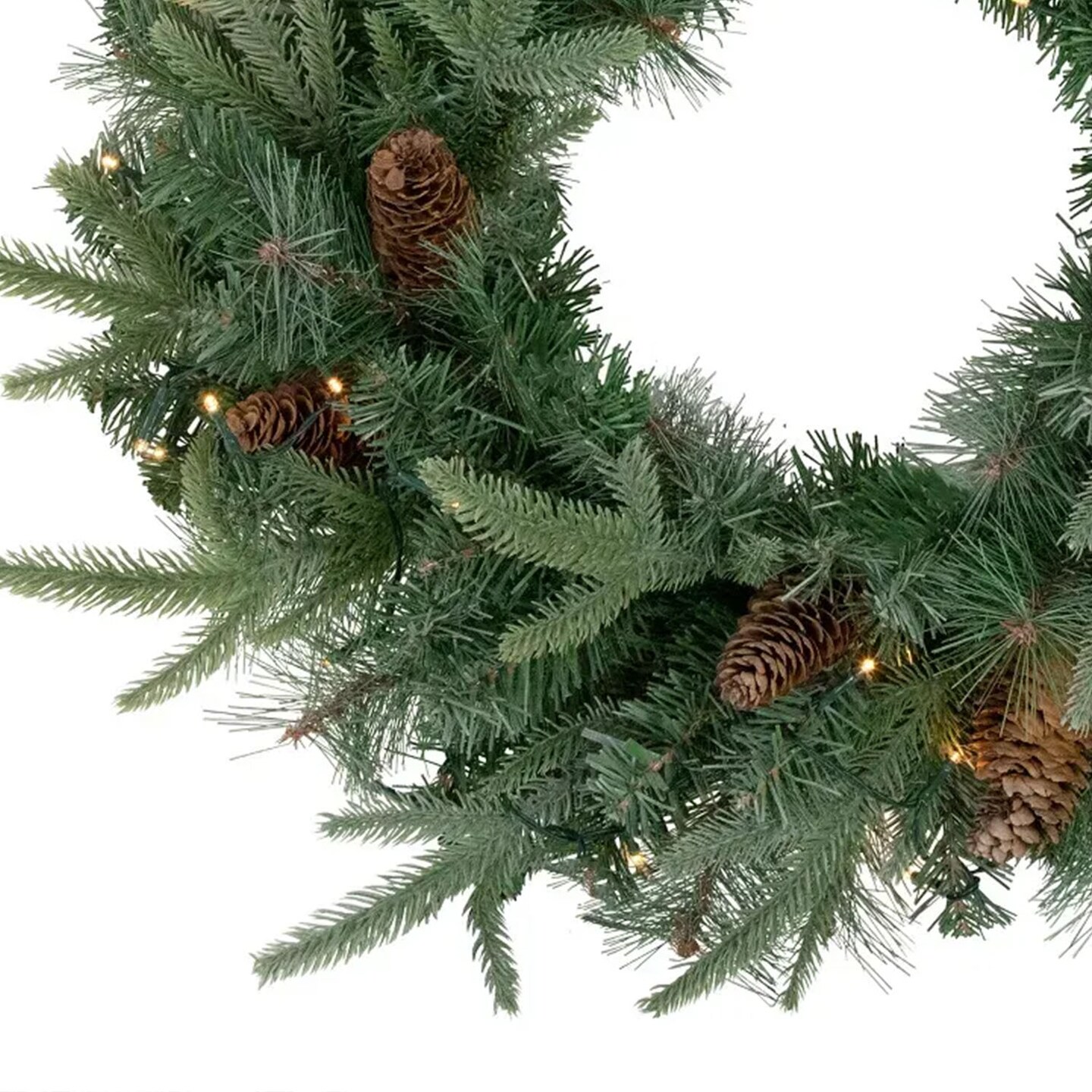 Pre-Lit Mixed Pine and Pine Cone Artificial Christmas Wreath with Warm White LED Lights 24 Inch