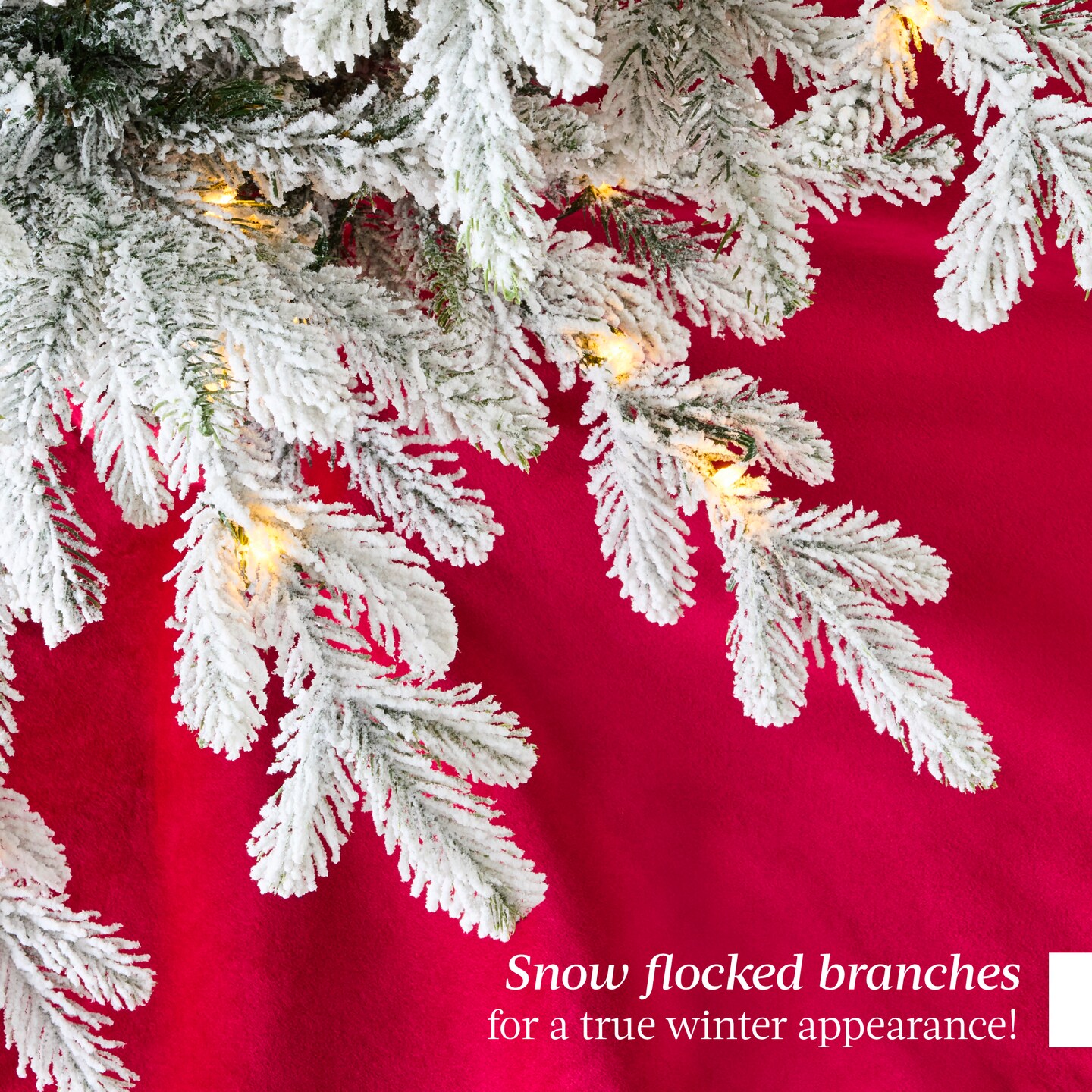 Pre-Lit Potted Flocked Christmas Tree, Realistic Artificial Décor, w/ Twinkling White & Multi LEDs
