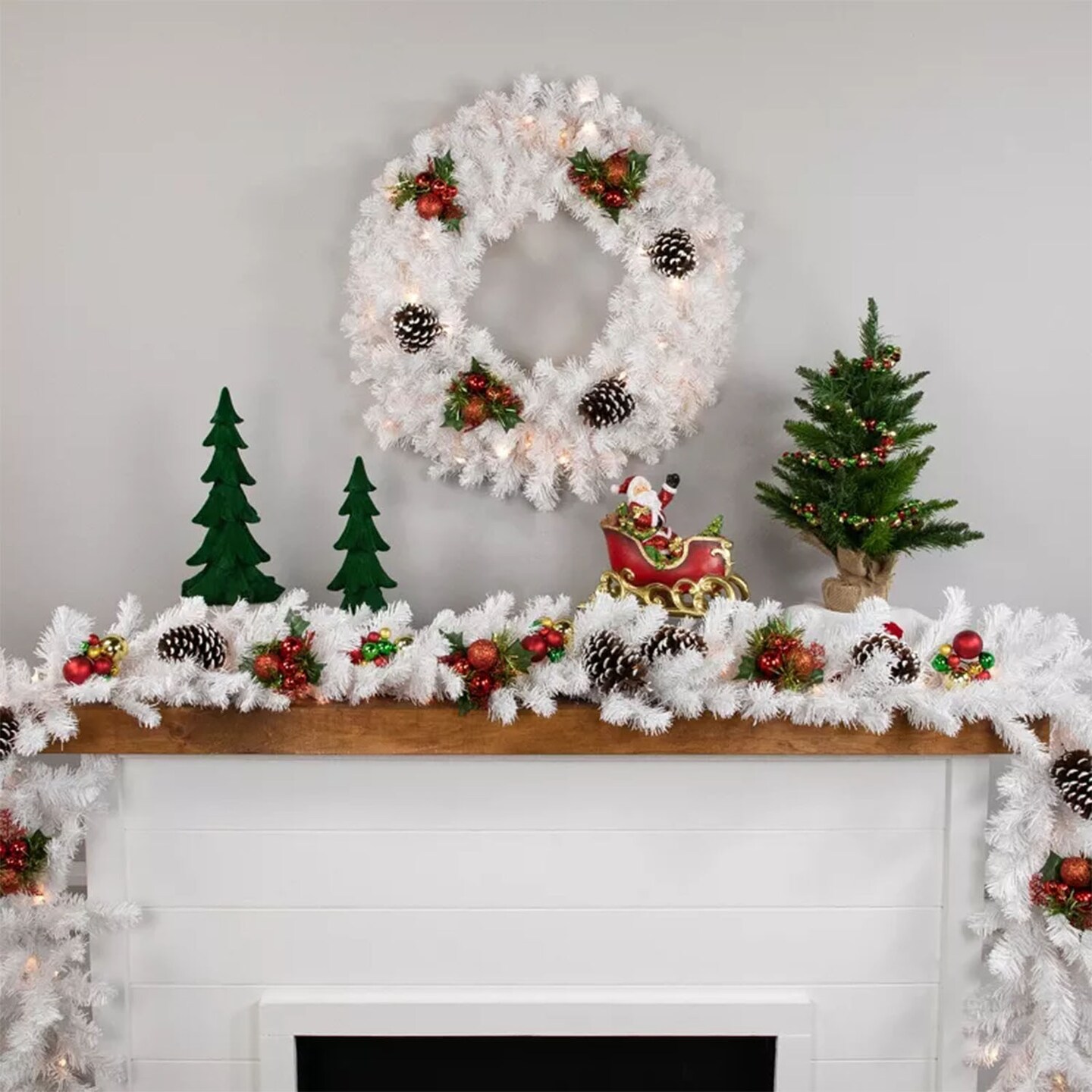 Prelit Snow White Artificial Christmas Wreath with Clear Lights 24 Inch
