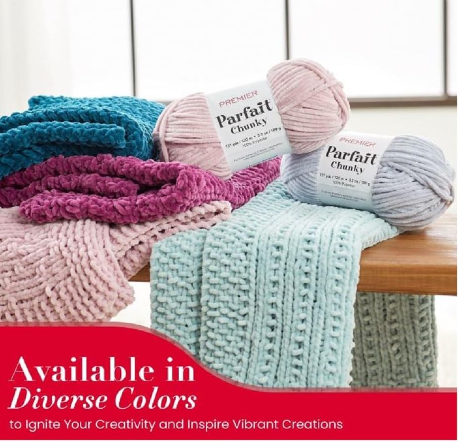 Premier Parfait Chunky Chenille Yarn Bundle – 3 Pack, #6 Super Bulky Polyester, 3.5 oz Skeins (131 yds Each) with Bella’s Stitch Place Holders – Goblin