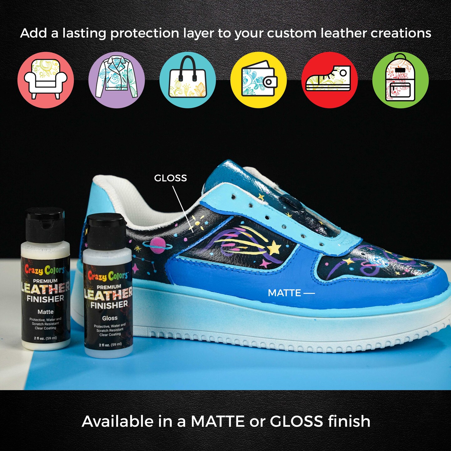 Premium Dull Matte Acrylic Leather and Shoe Paint Finisher, 2 oz Bottle - Clearcoat Sealant Protection - Durable Scratch, Crack, Peel, Fade Resistant Finish - Artwork Jackets, Bags Purses