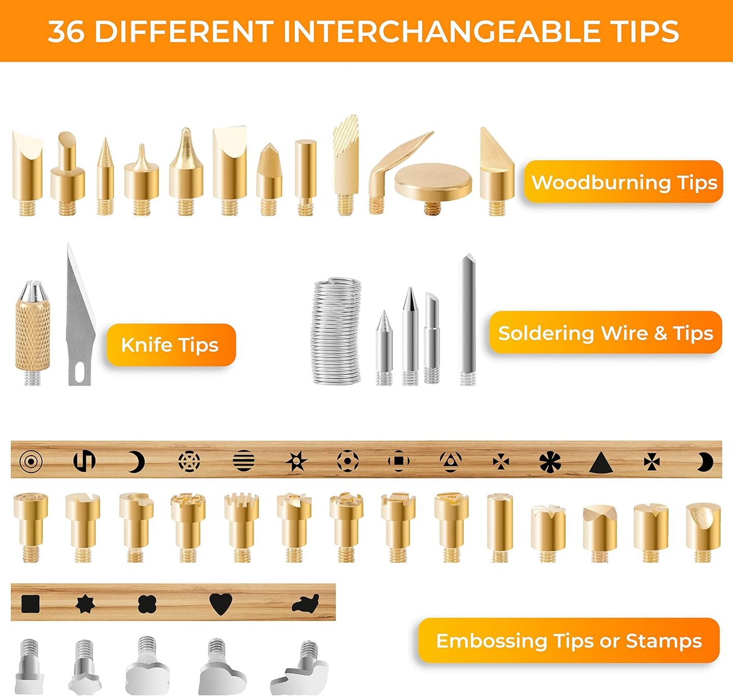 Premium Wood Burning Kit 43PCS, Dual Power Mode Wood Burner Pen Tool with 36Tips & Accessories All In A Wood Storage Case - Complete Gift For An Effortlessly Mastering The Art Of Pyrography