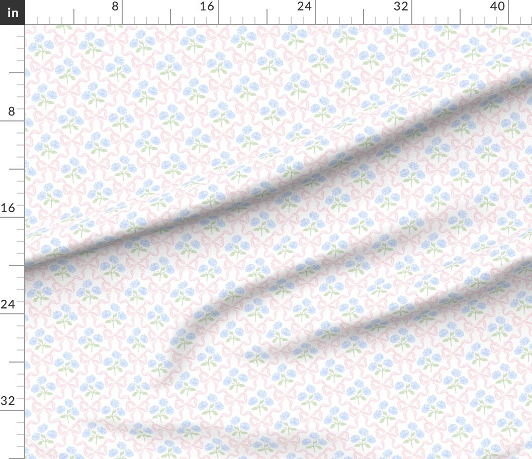Preppy Bow Floral Delicate Pastel Flowers Feminine Traditional Easter Hydrangea Blue Pink White Cottagecore Custom Printed Fabric by Spoonflower Various Fabrics by the Yard or Fat Quarter