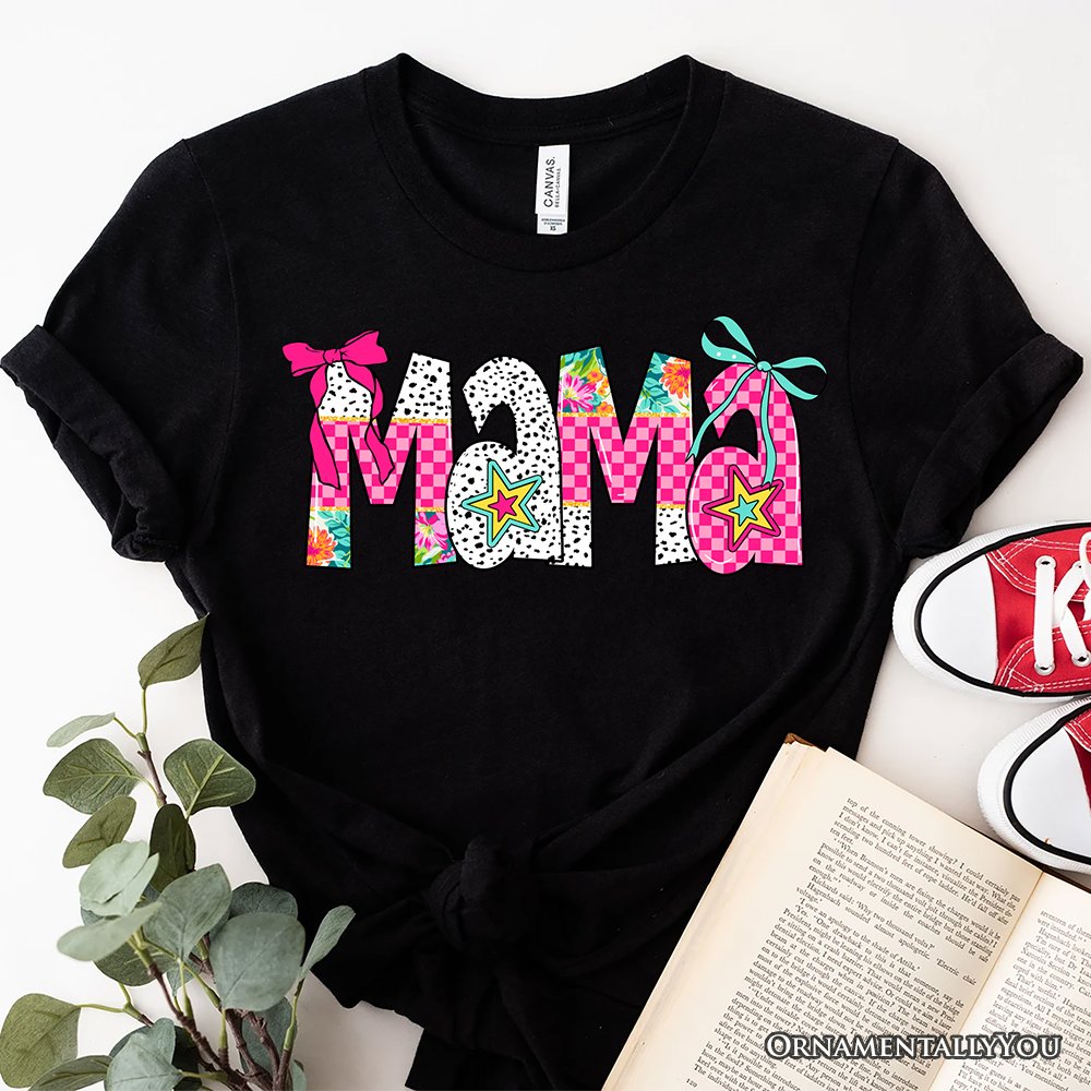 Preppy Pink Mama Coquette T-Shirt, Retro White and Black Tee for Trendy and Stylish Moms