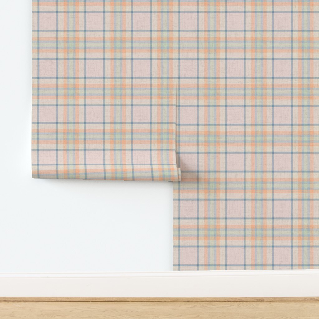Preppy Tartan Plaid Traditional Pastel Pink Blue Green Cabincore Modern Farmhouse Summer Cottagecore Coquette Feminine Cabin Camping Lodge Lake Custom Removable Wallpaper by Spoonflower Peel & Stick Wallpaper 2FT Wide