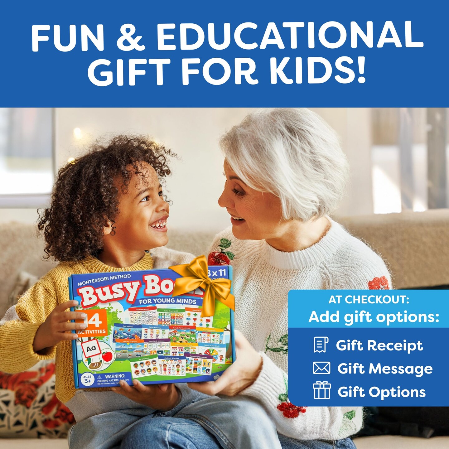 Preschool Busy Book For Toddlers Ages 3 And Up - Preassembled - Preschool Learning Activities Homeschool Montessori Toys - Gifts For 3 Year Old Boys - 4 Year Old Girl Birthday Gifts
