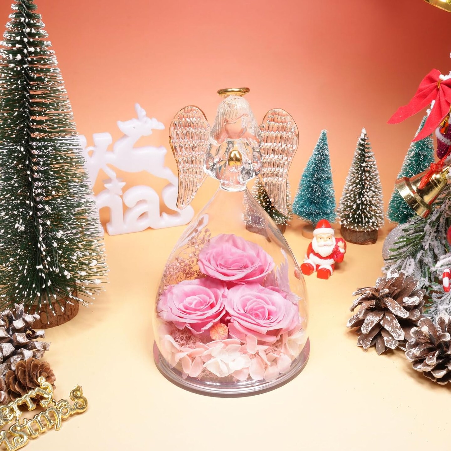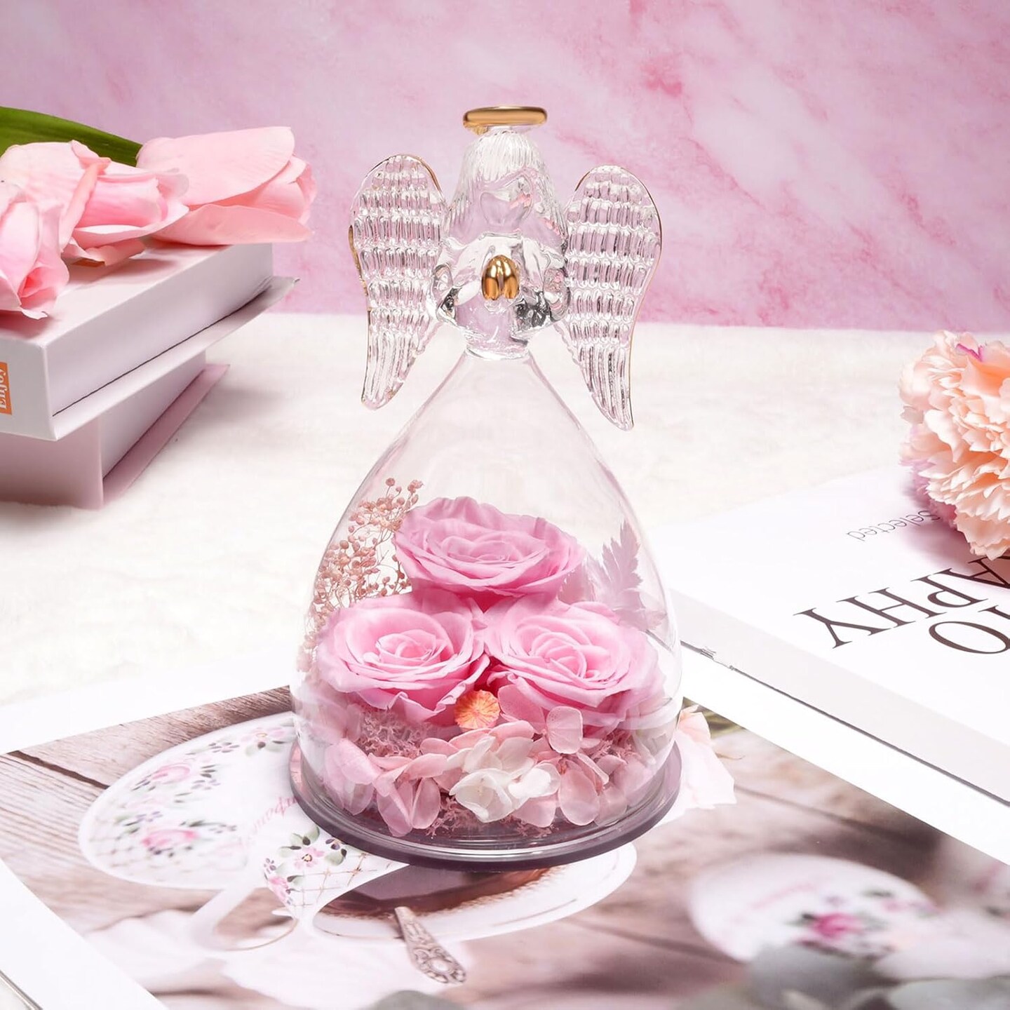 Preserved Flower Angel Rose Gifts for Women (3-pink)