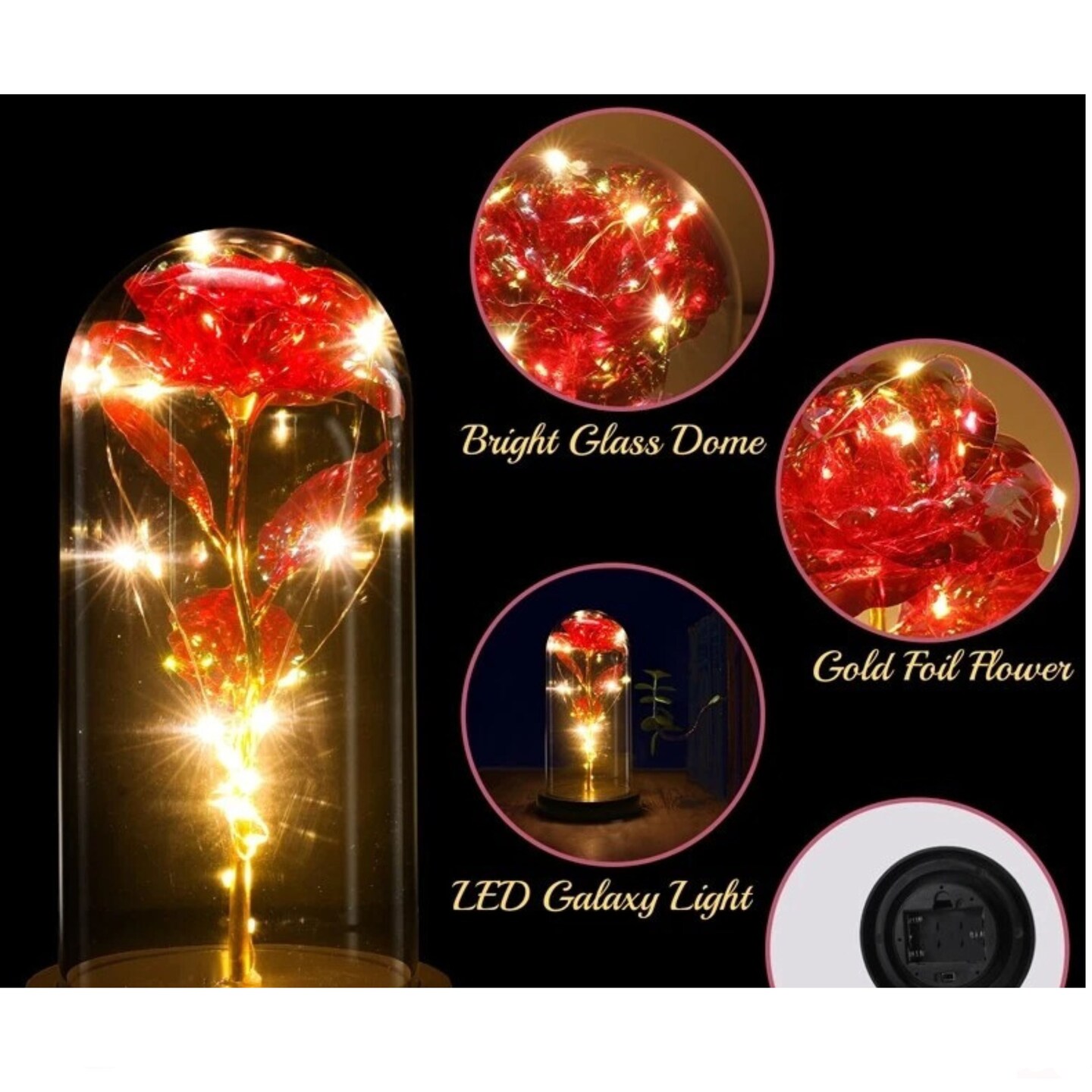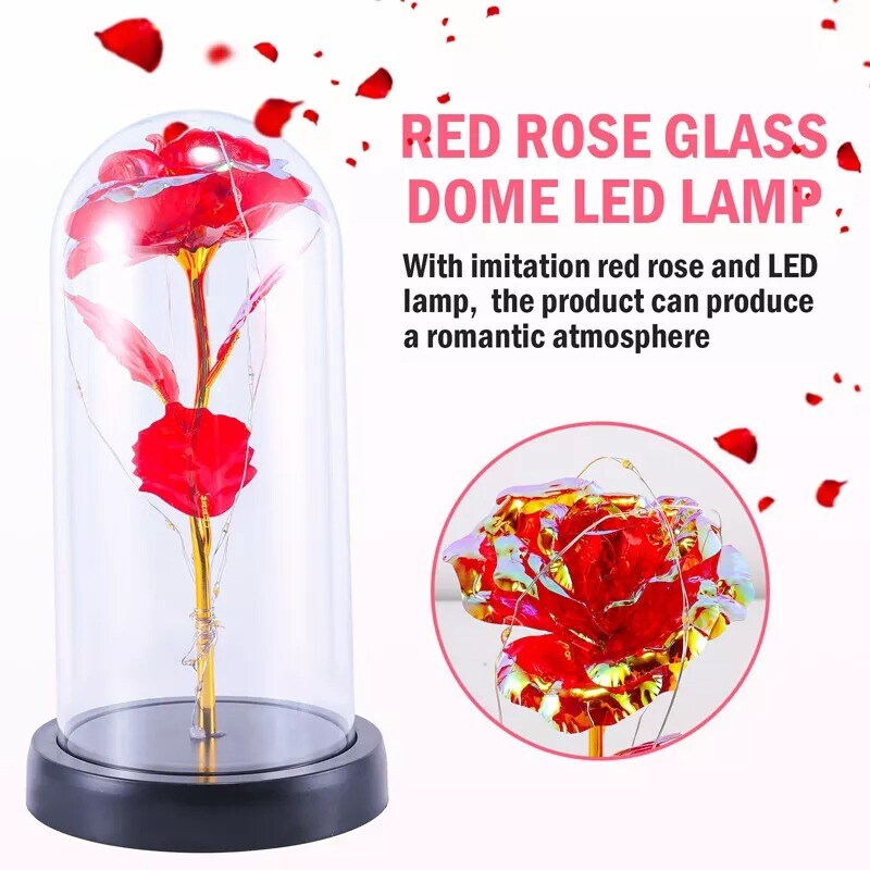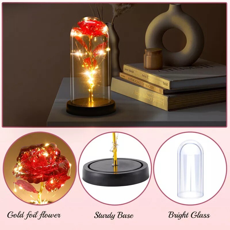 Preserved Rose in Glass Dome with LED Lights Elegant Gift Décor