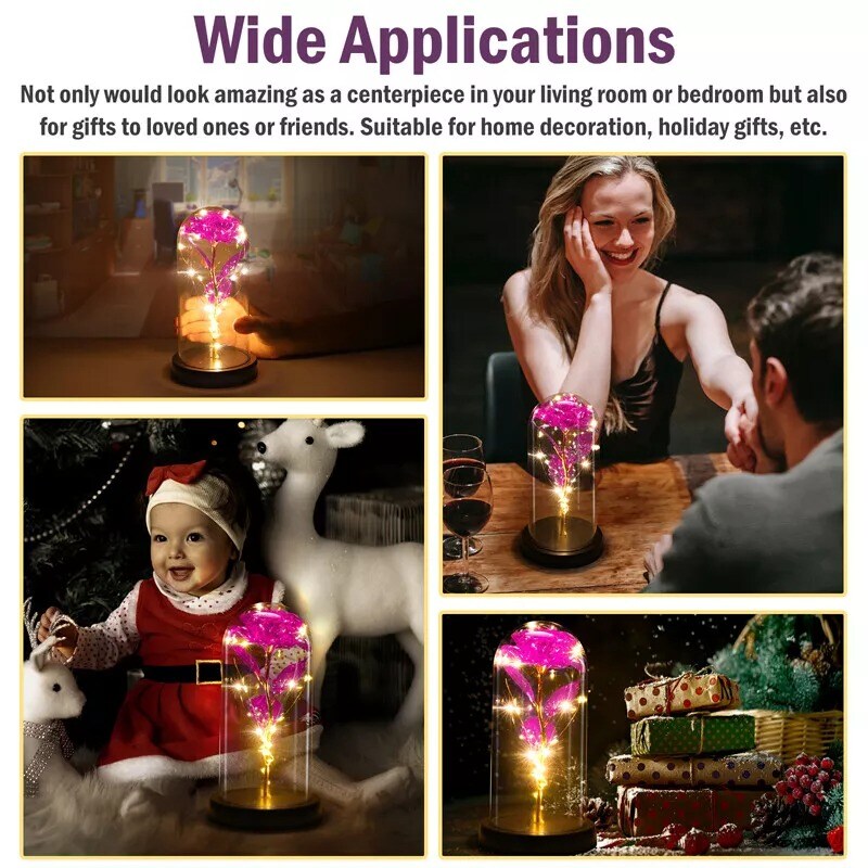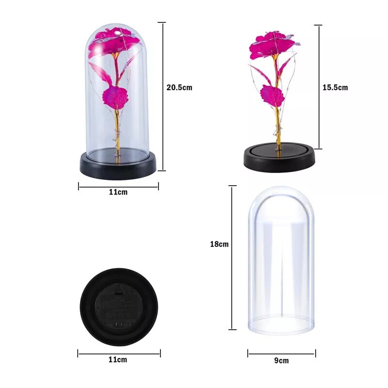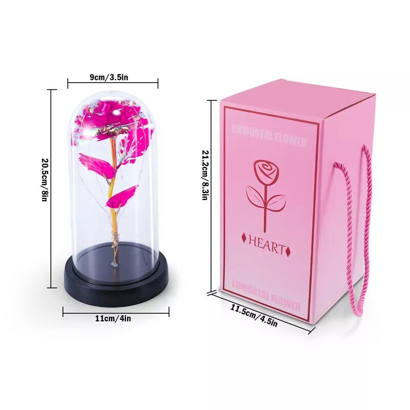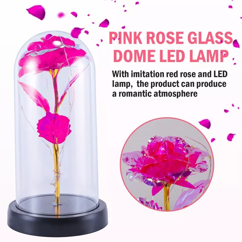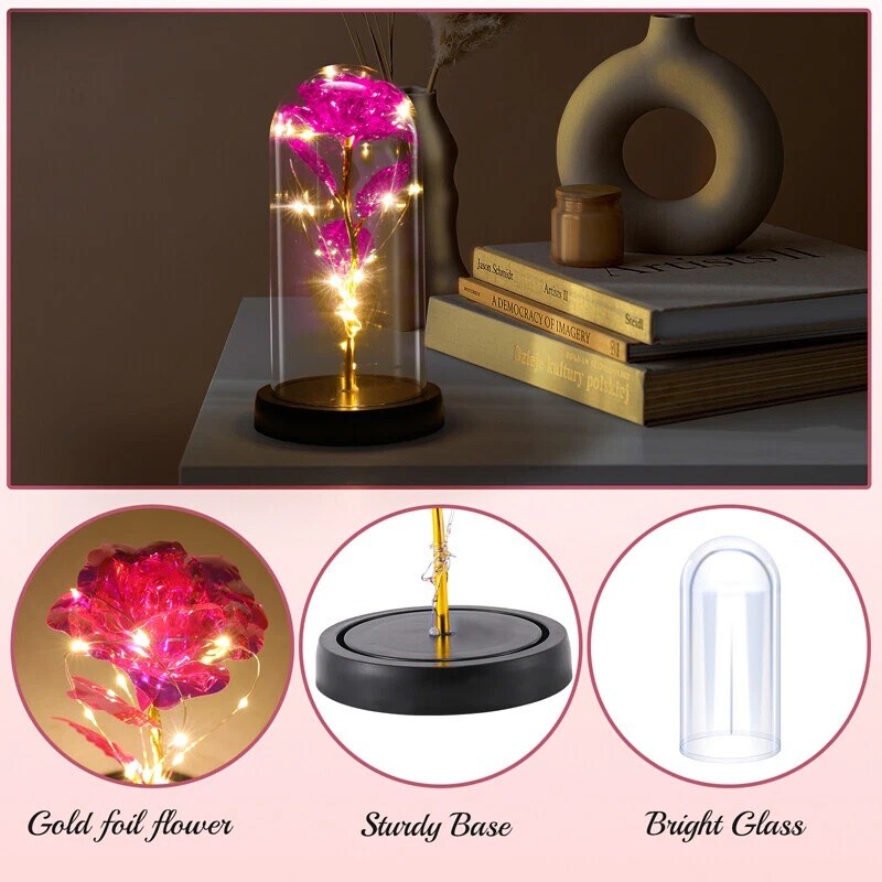 Preserved Rose in Glass Dome with LED Lights Elegant Gift Décor