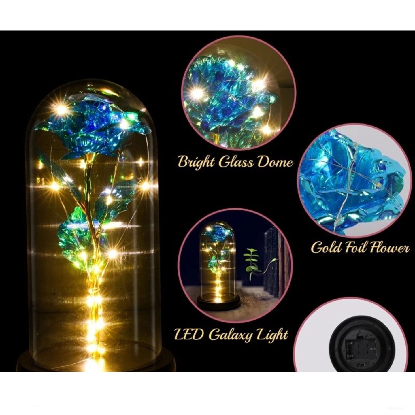 Preserved Rose in Glass Dome with LED Lights Elegant Gift Décor