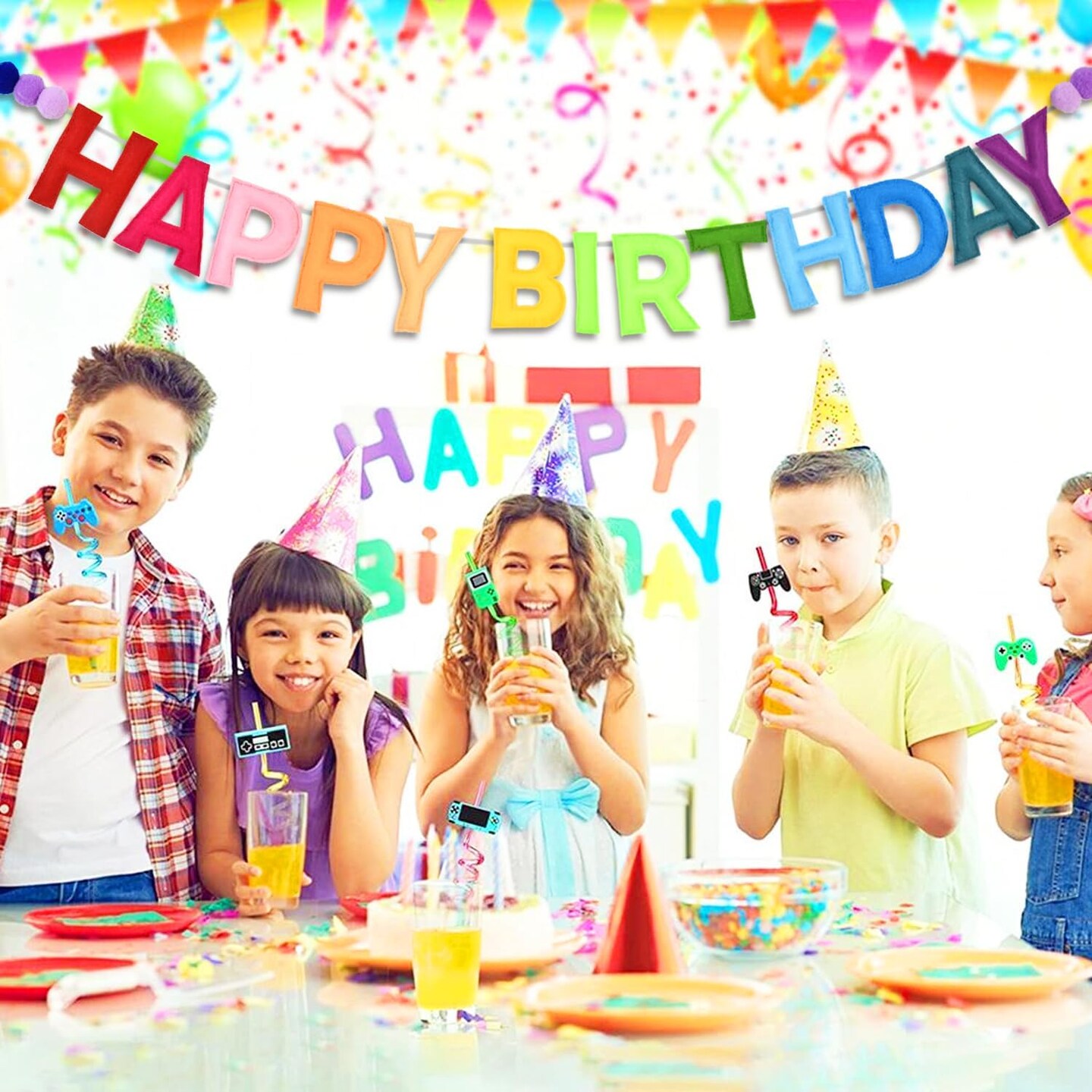 Pre-Strung Felt Happy Birthday Garland with Pompom Balls, Handmade Banner Decorations for Party Decor (Color)