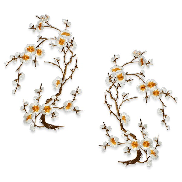 Pretty Plum Blossom Pair Iron On Embroidered Applique/Patch Patch