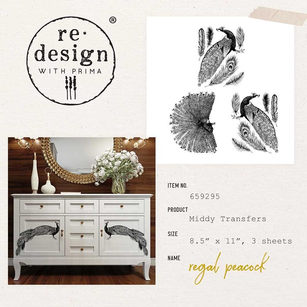 Prima Marketing Re-Design Decor Transfers 8.5"X11" 3/Sheets-Middy- Regal Peacock